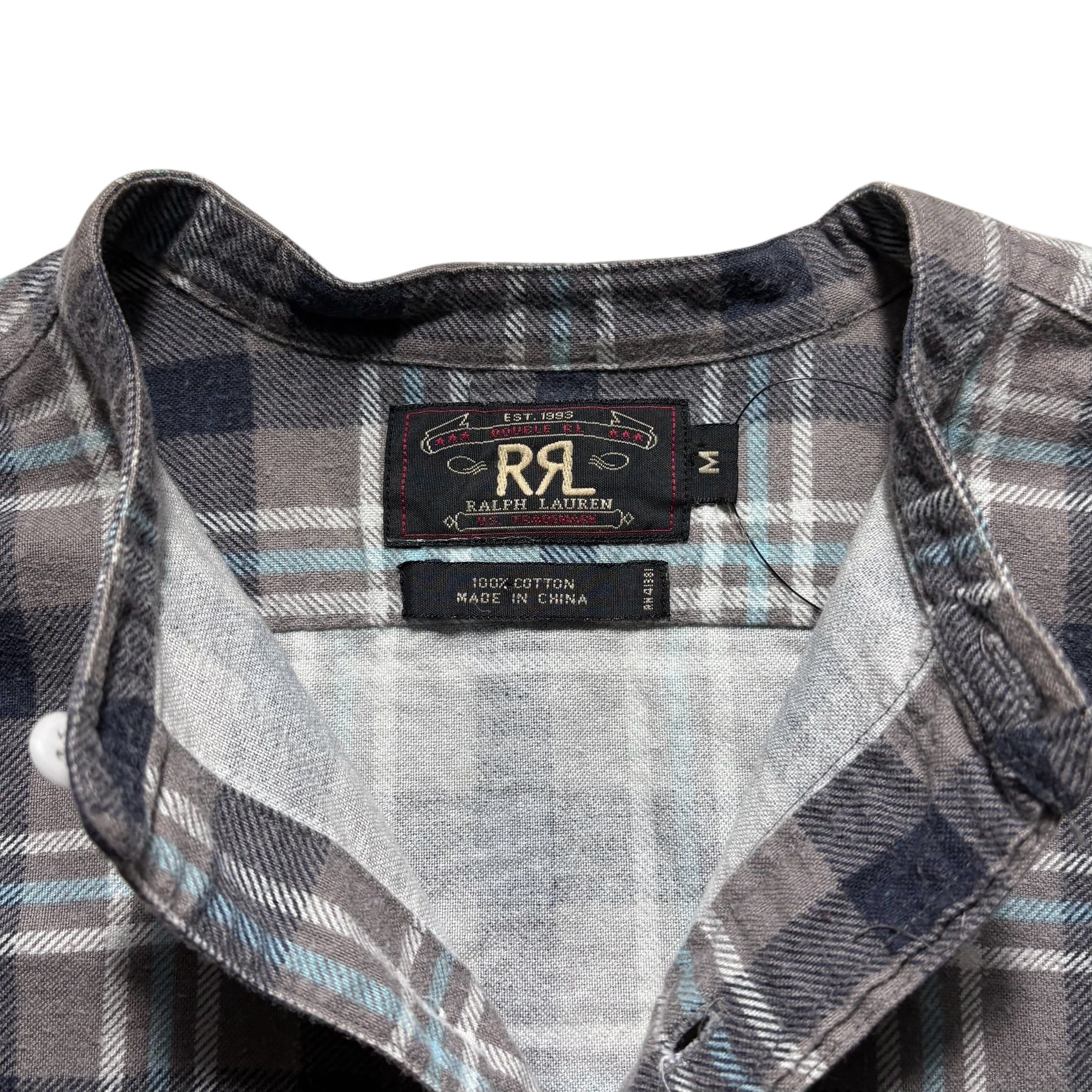 early RRL band collar check shirt