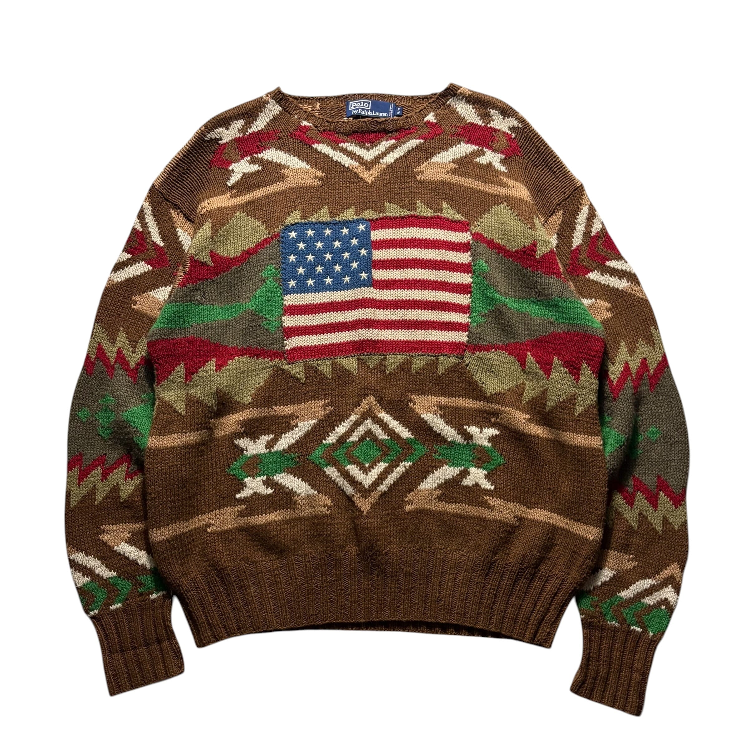 vintage 1990’s POLO by RALPH LAUREN native pattern hand knit “Stars&Stripes”