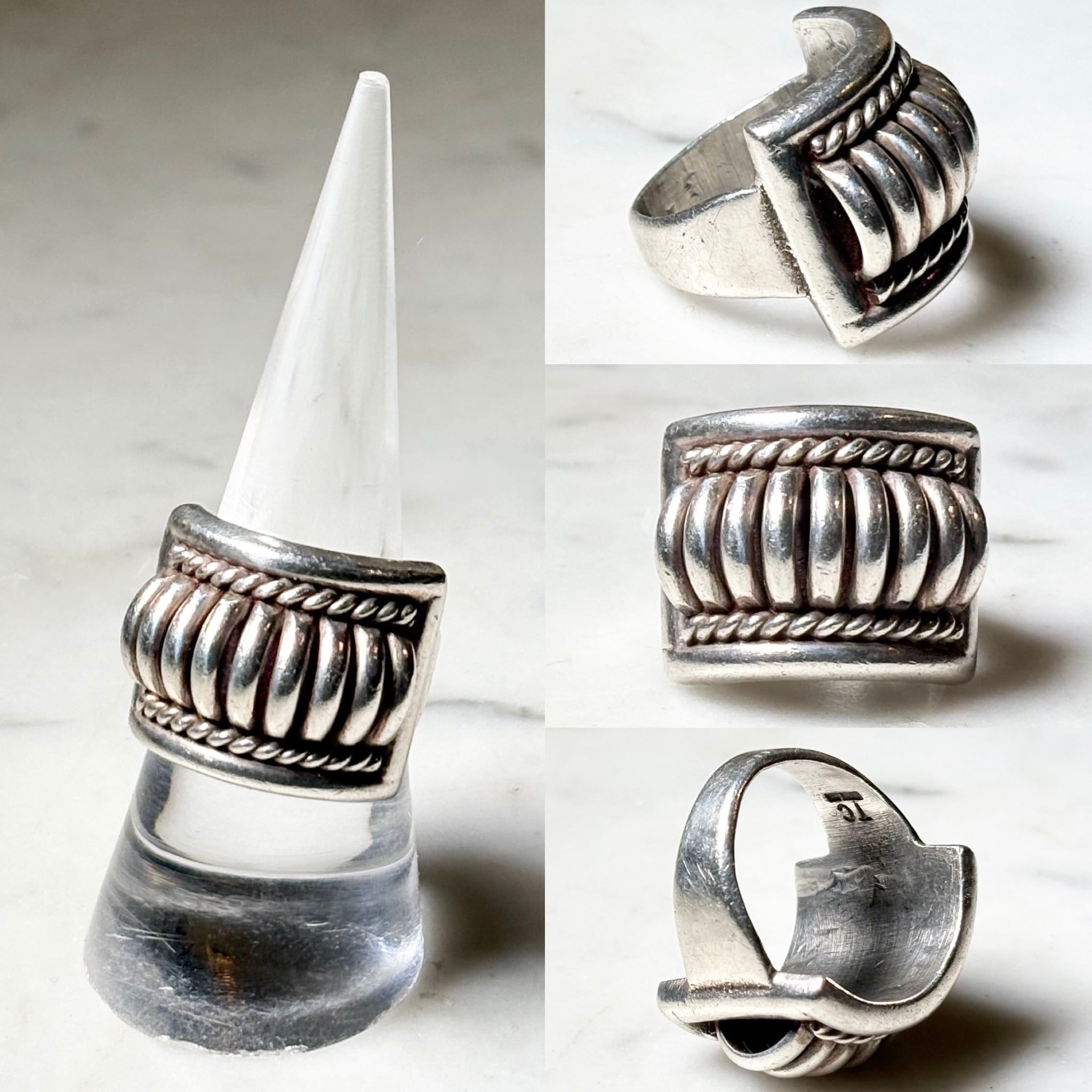 Navajo Thomas Charley silver ribbed melon ring