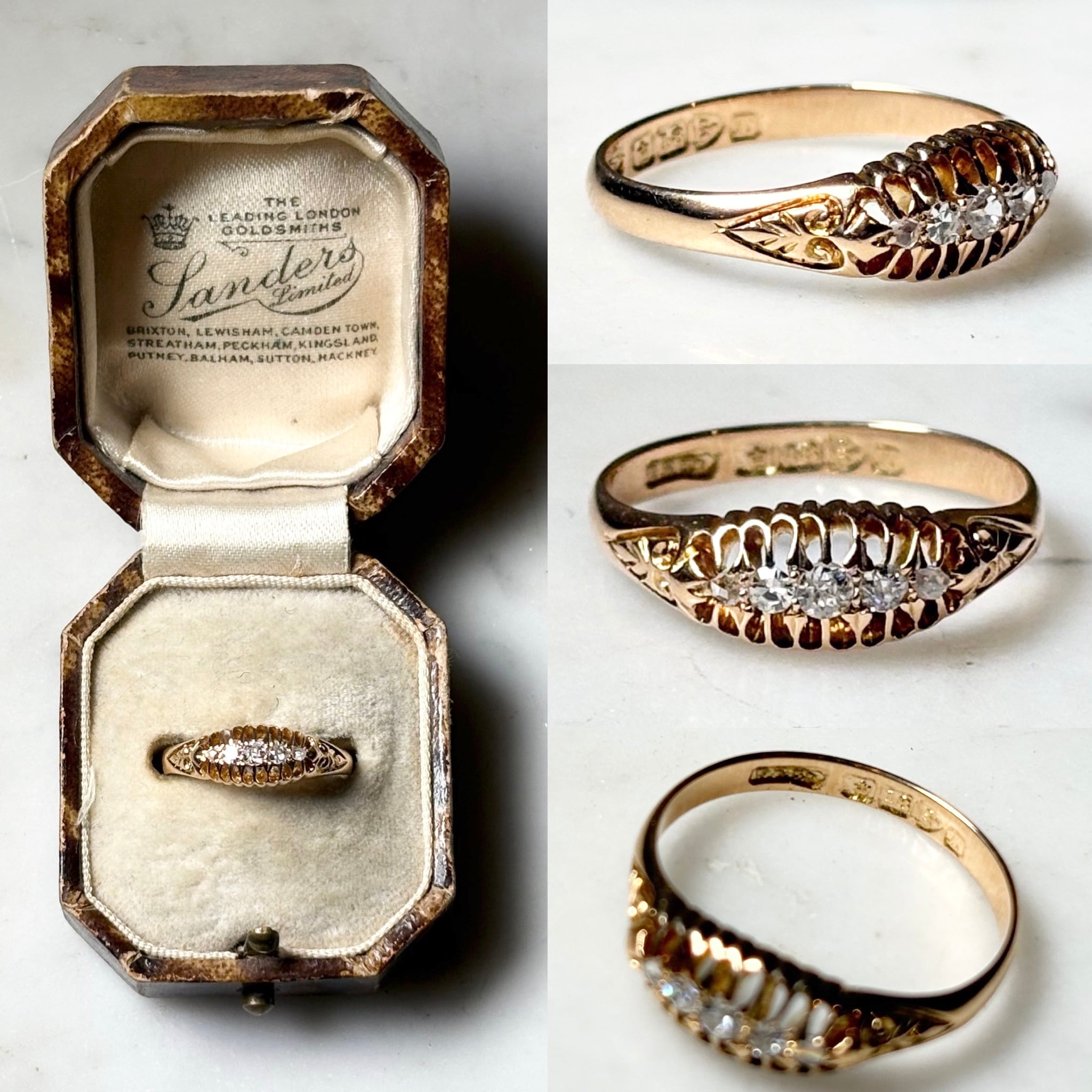 antique c1913 18ct gold five diamond ring