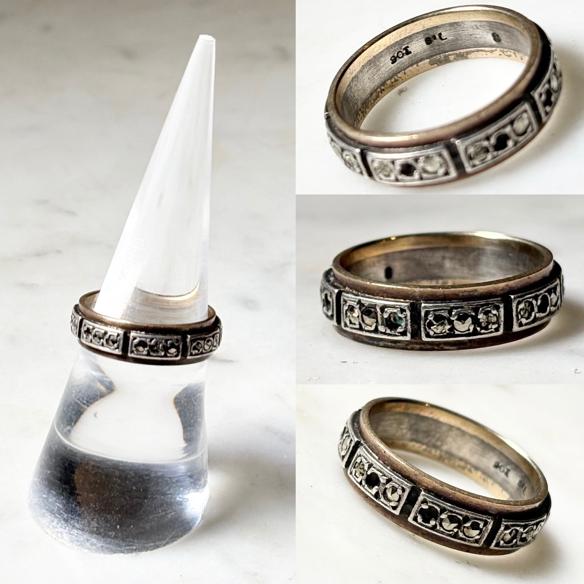 vintage silver × 9ct gold band ring