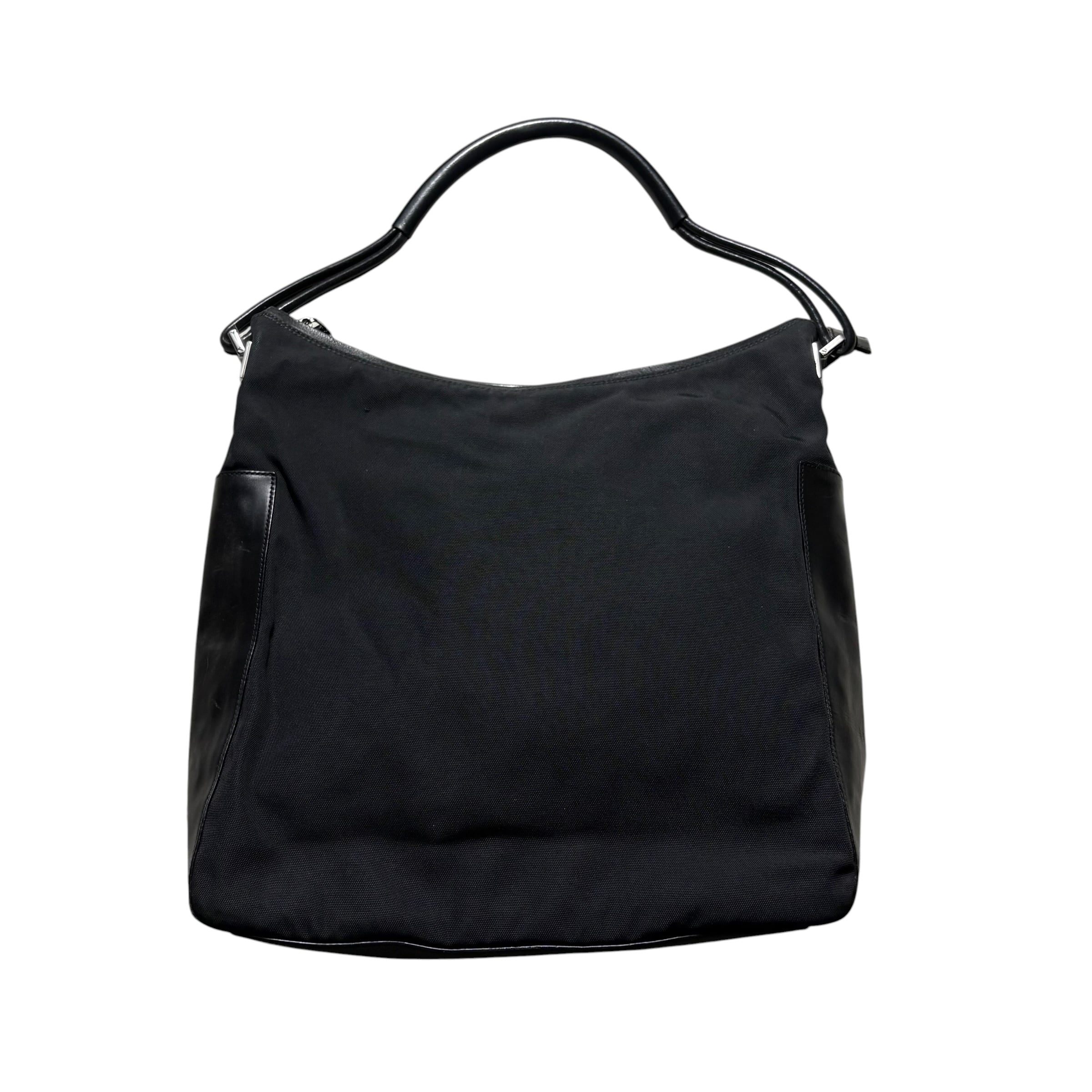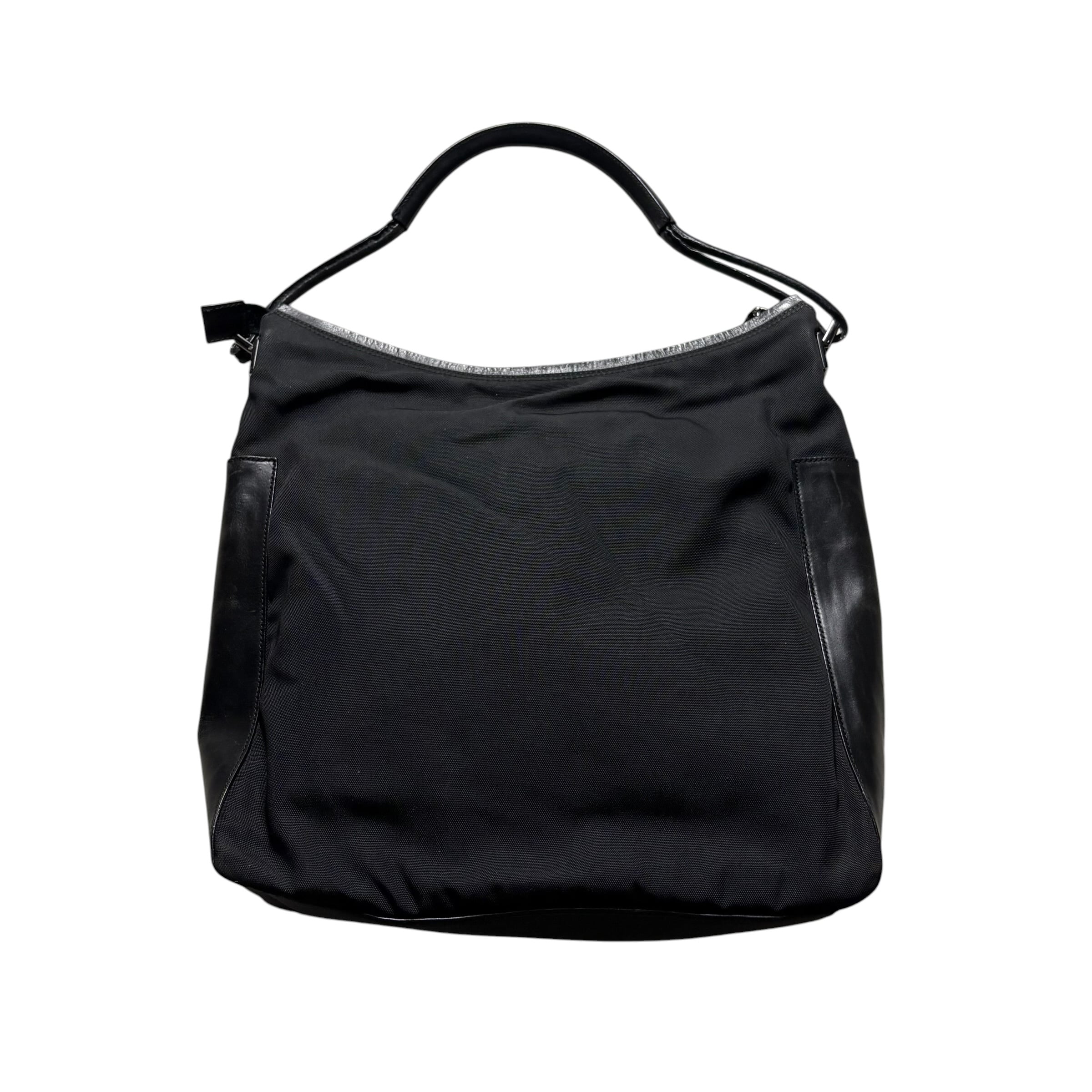 オールブラックでナイロンキャンバス×レザー。