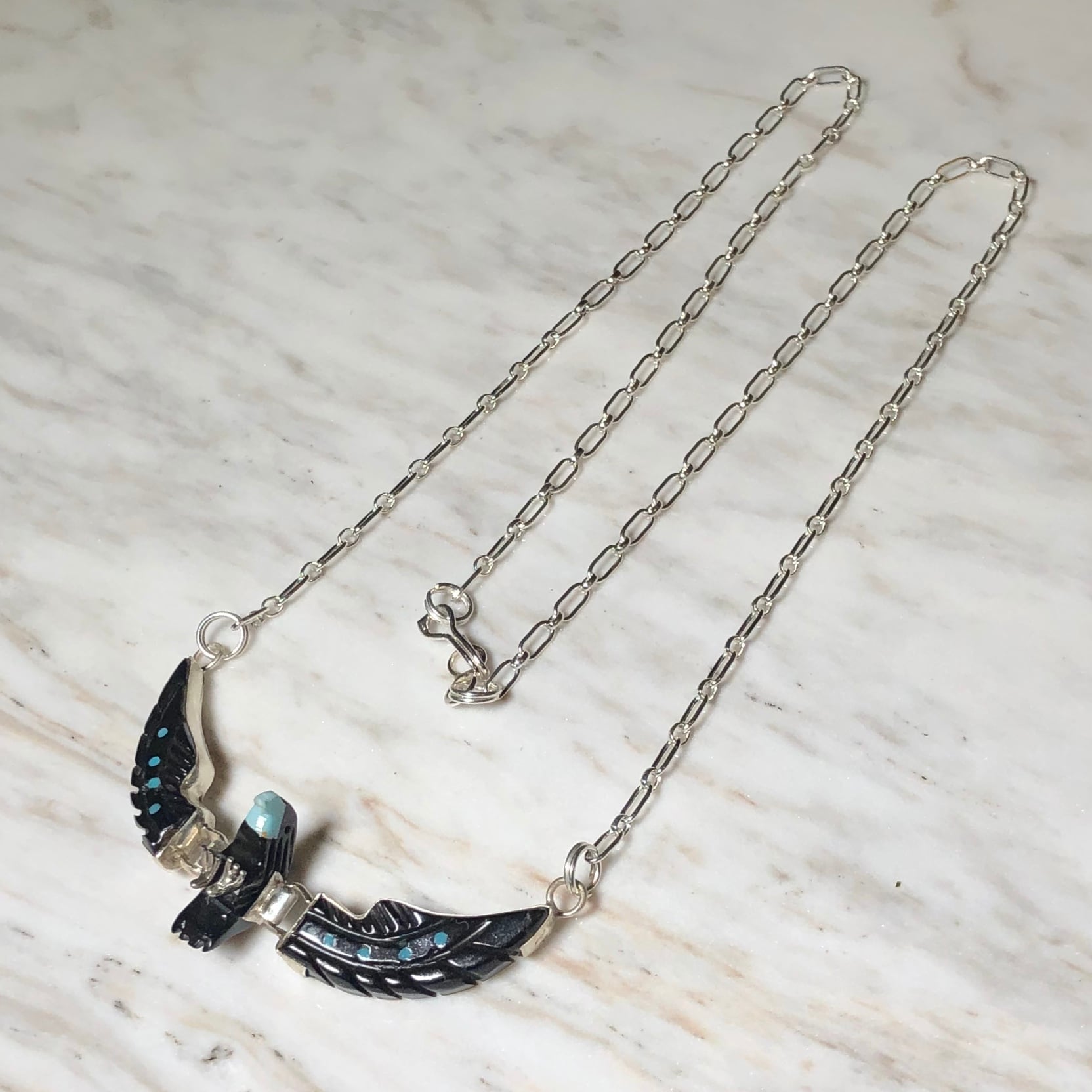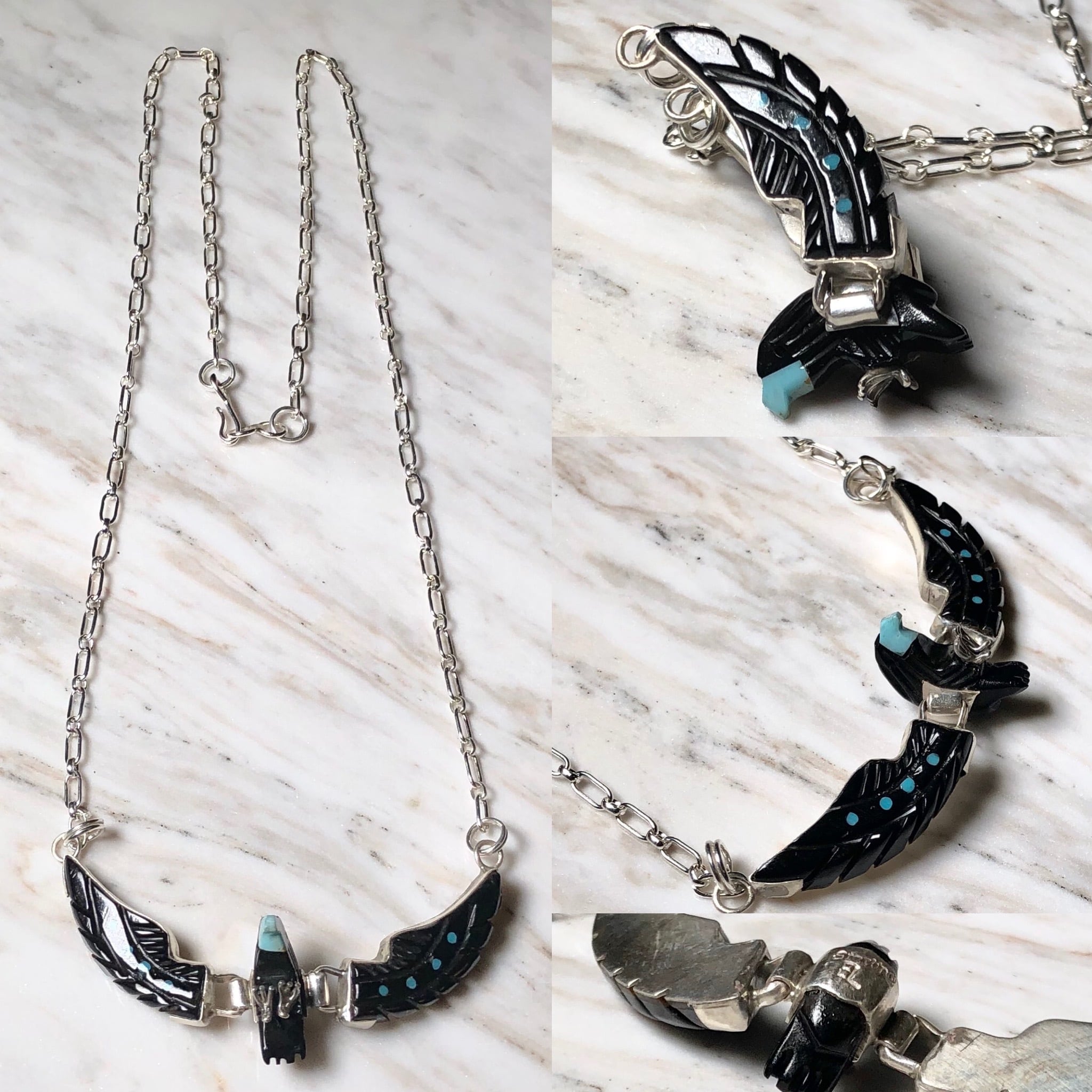 ben livingston silver eagle necklace set with turquoise&jet