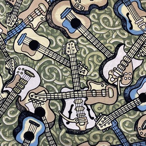 old guitar pattern rayon open collar shirt