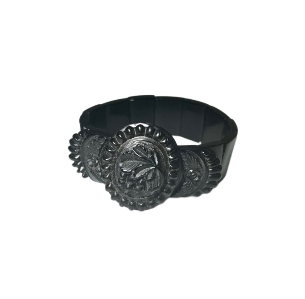 antique victorian engraved whitby jet bracelet