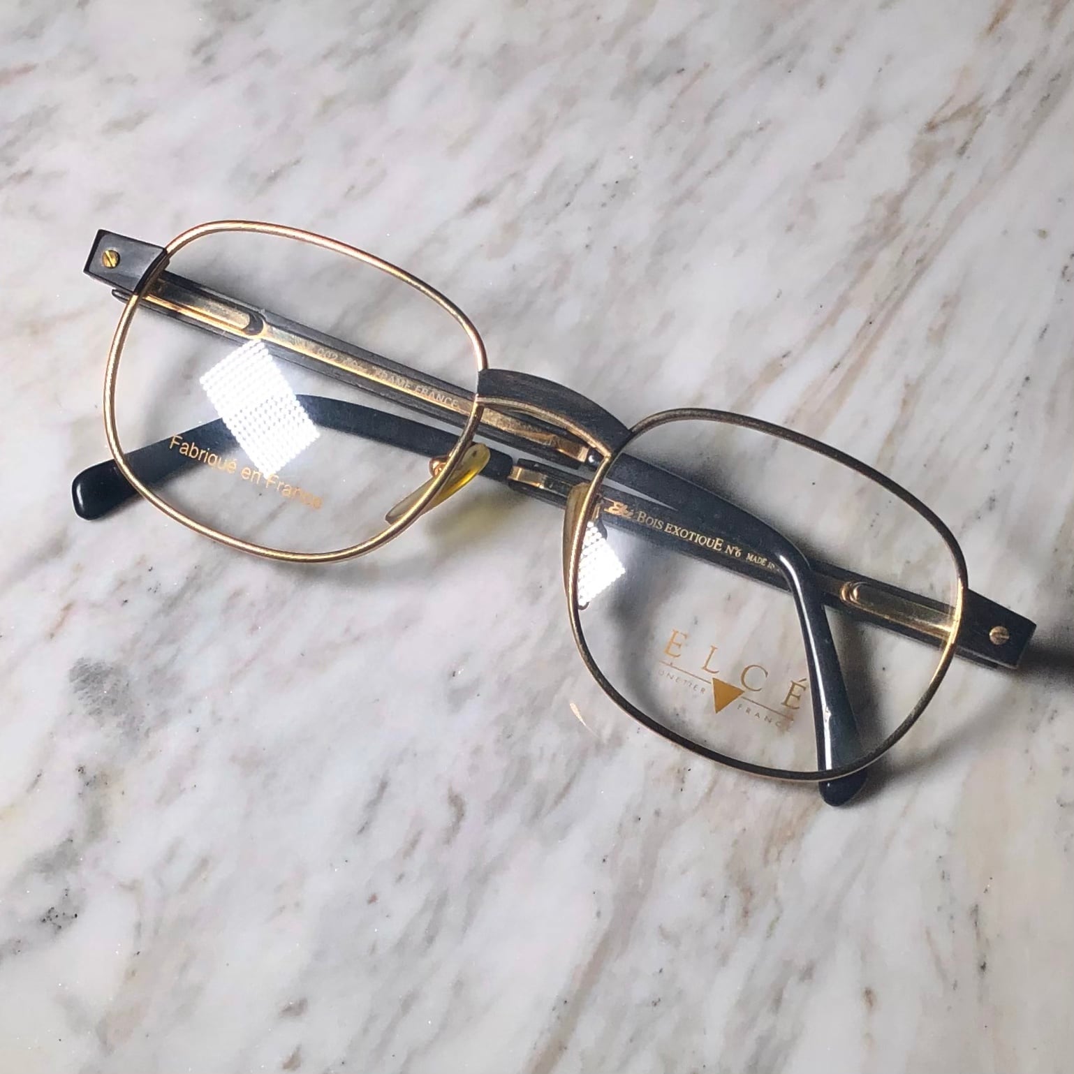 ELCE wood temple semi-square glasses "c-002"
