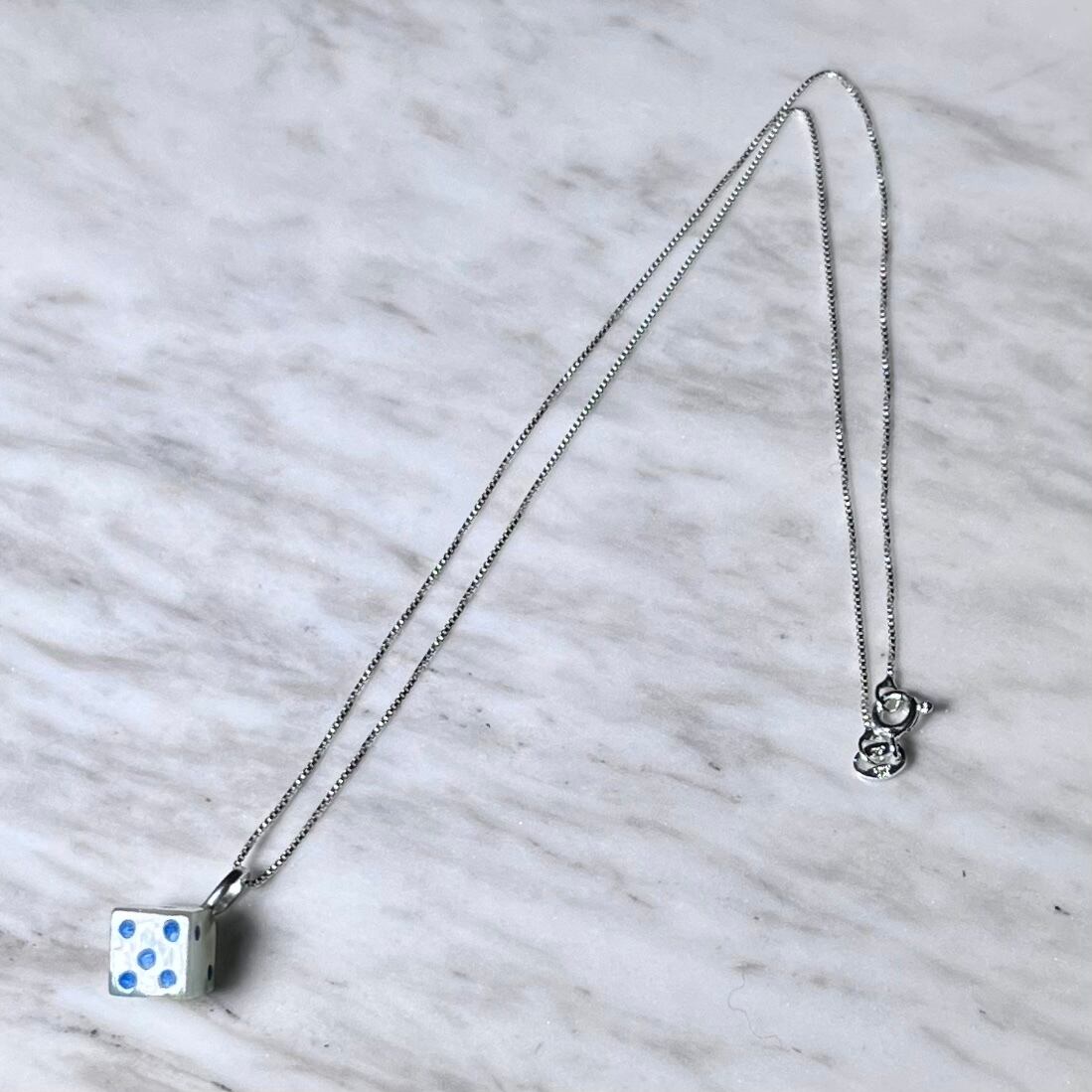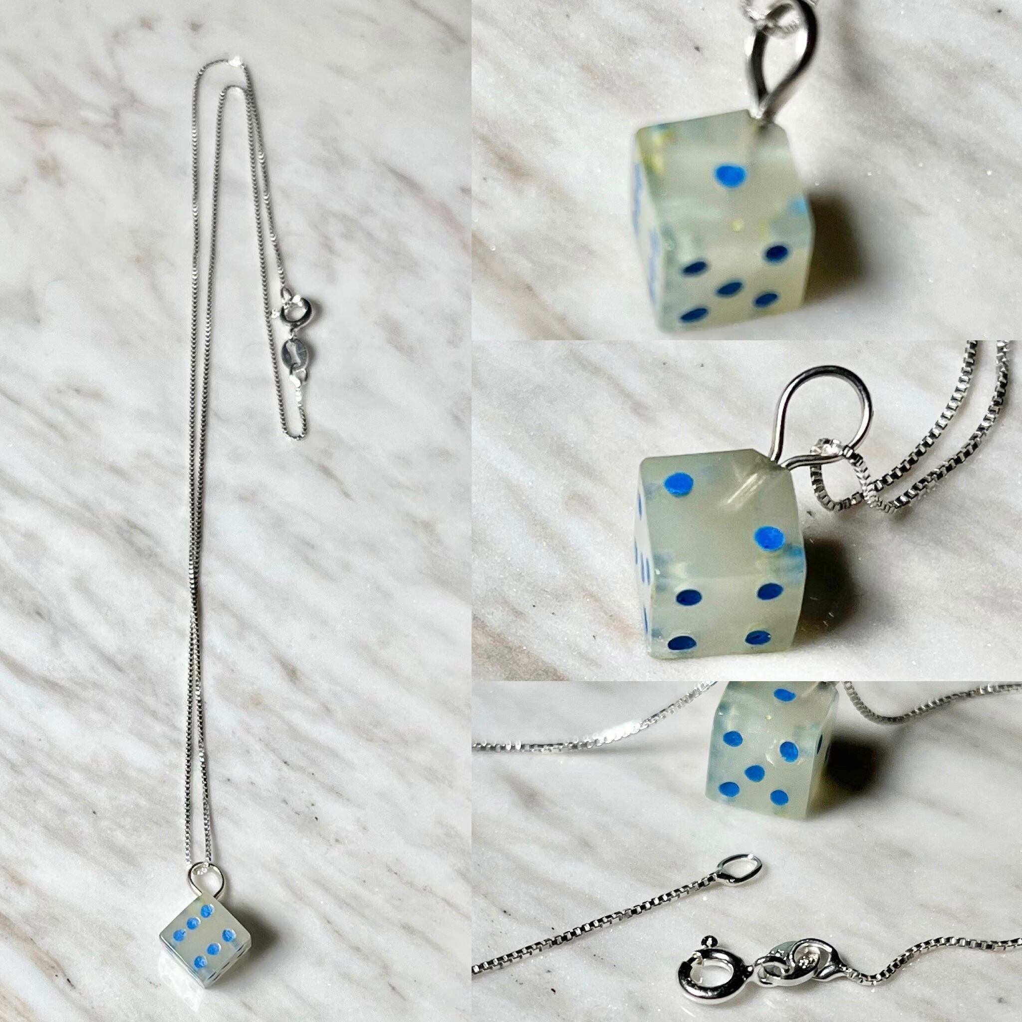 ペンダントトップは天然石のダイス。