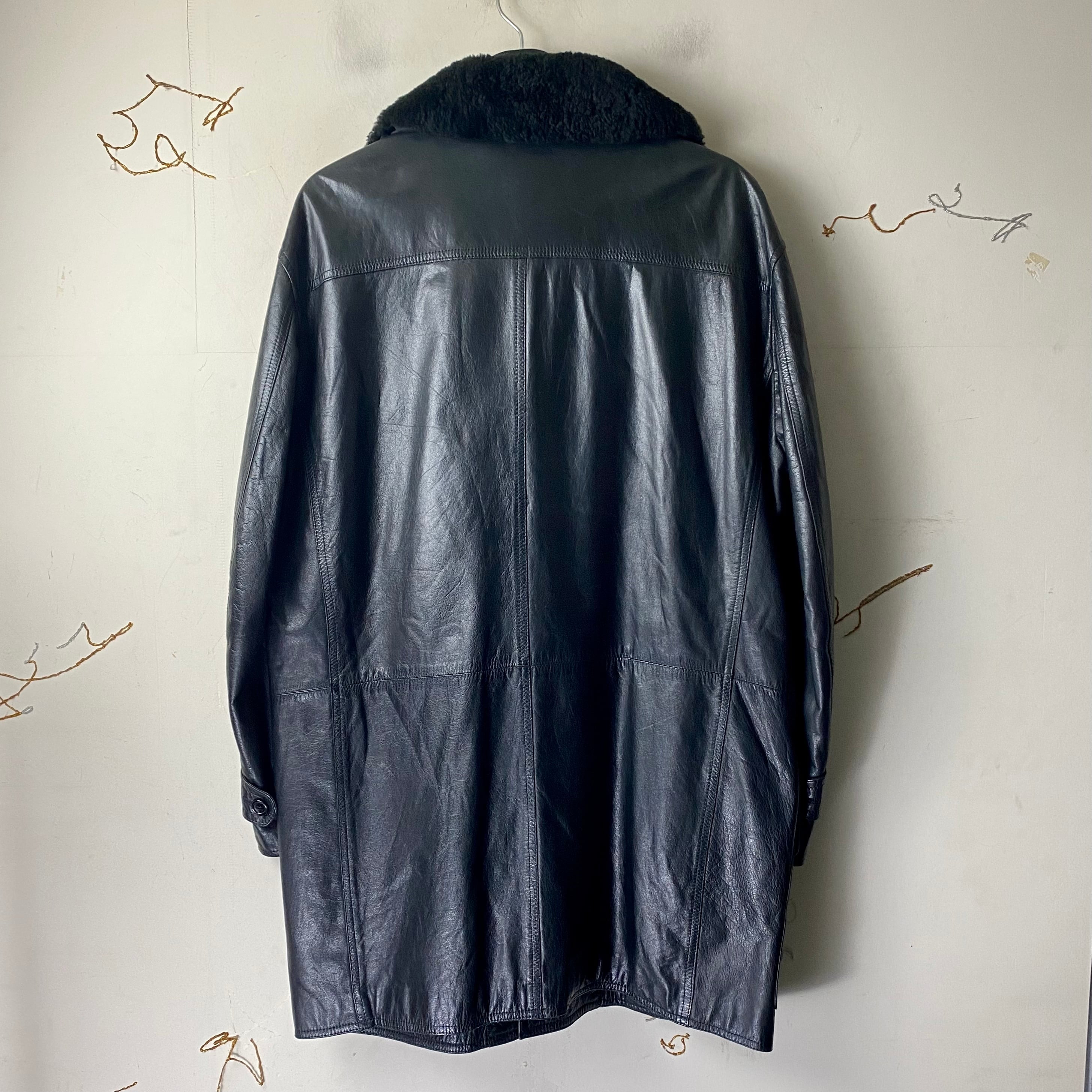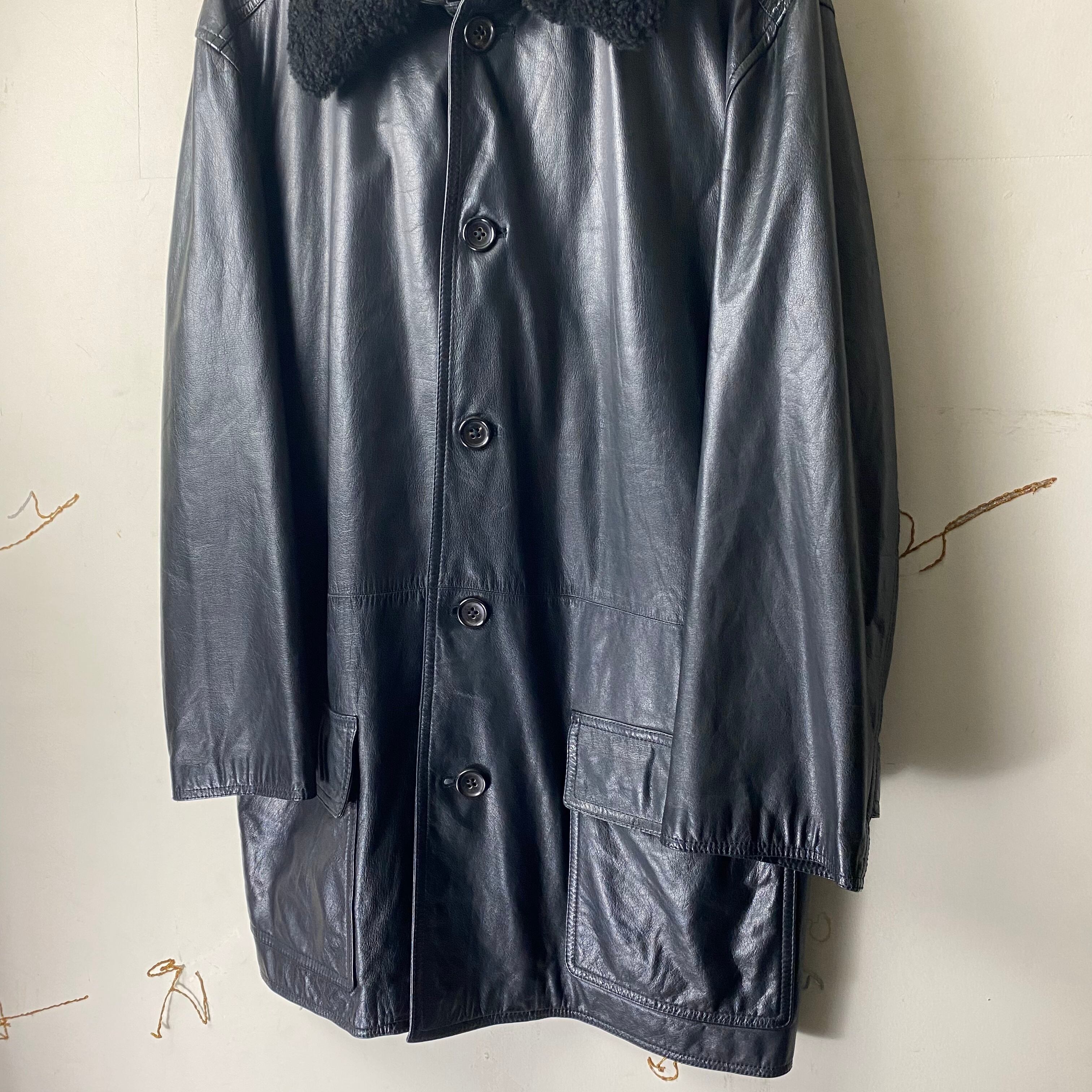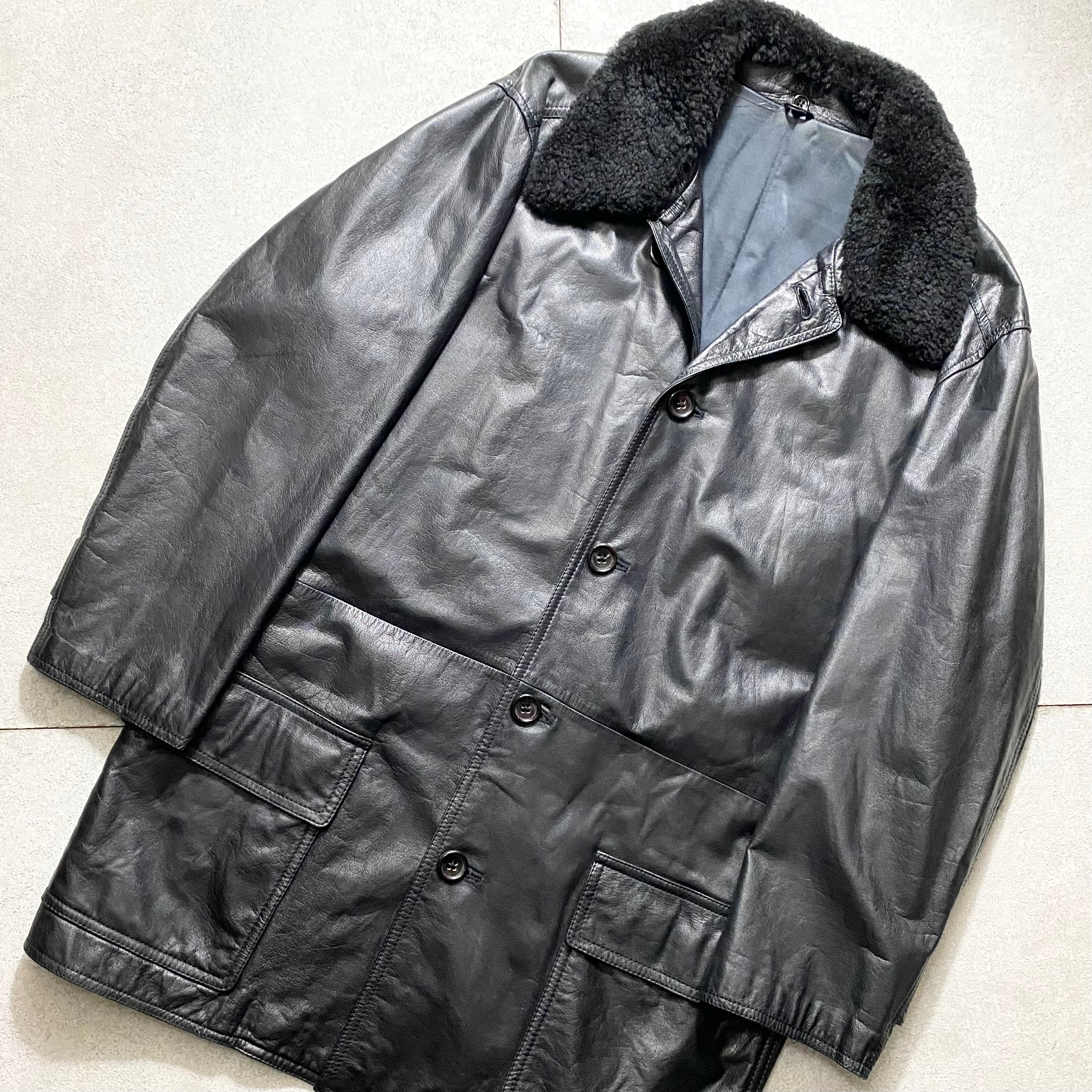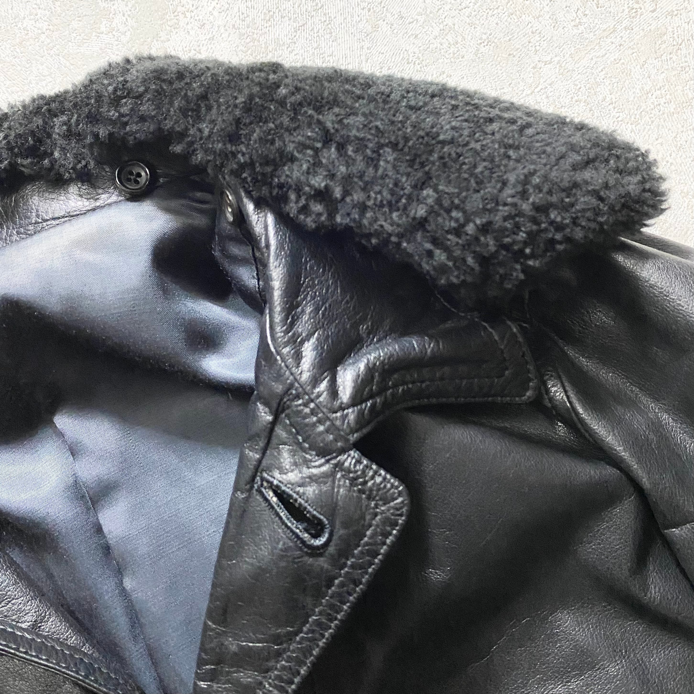 vintage Y’s FOR MEN black leather coat with mouton