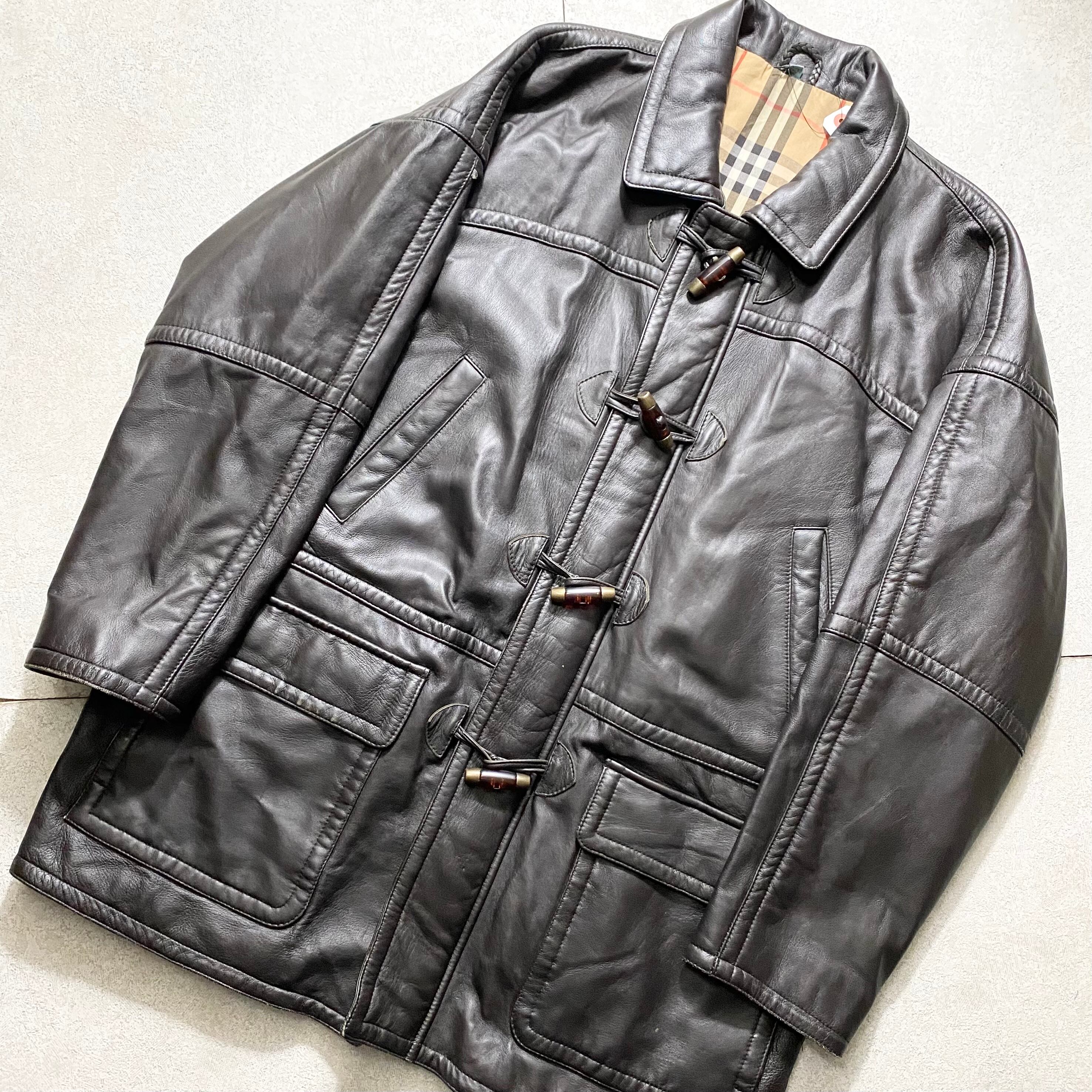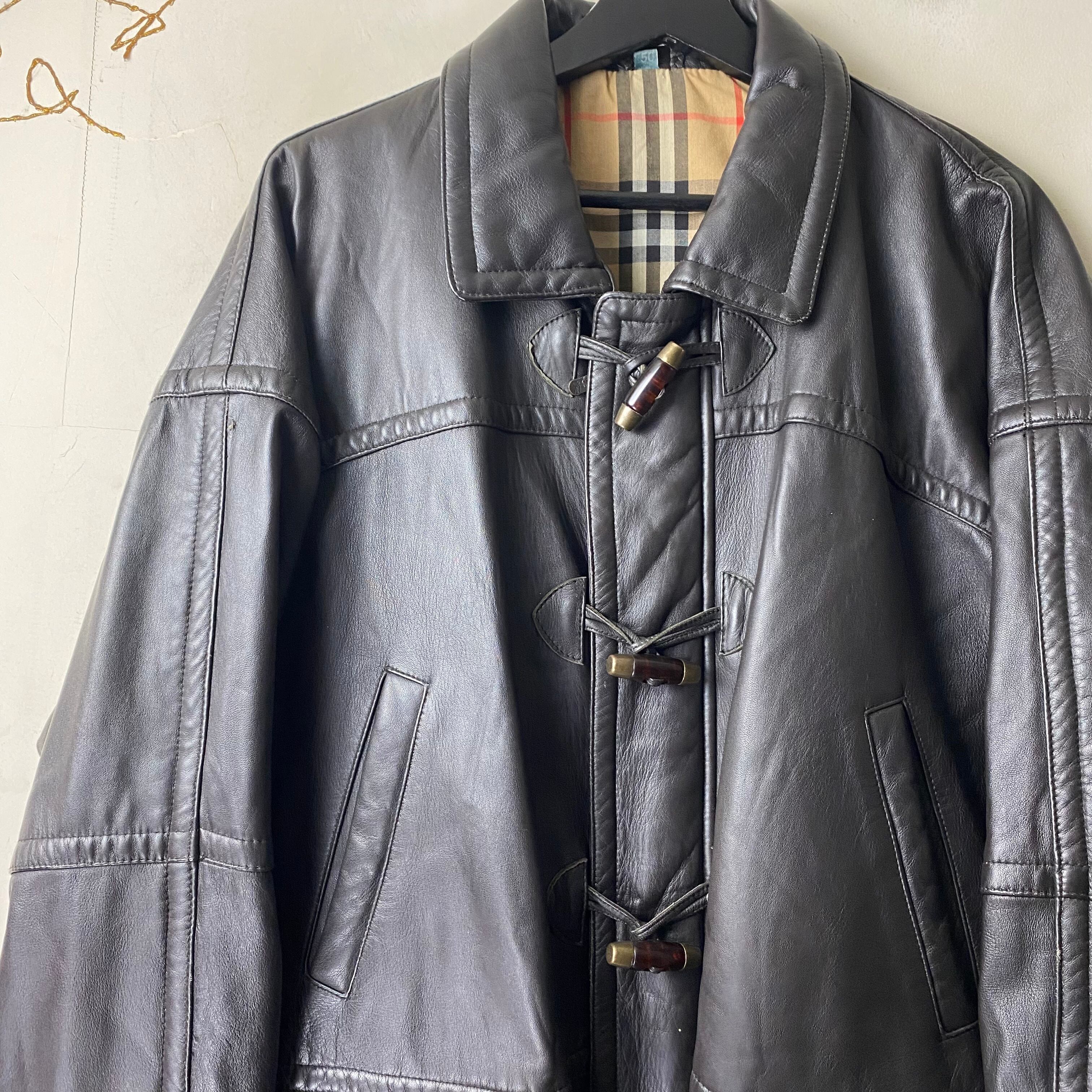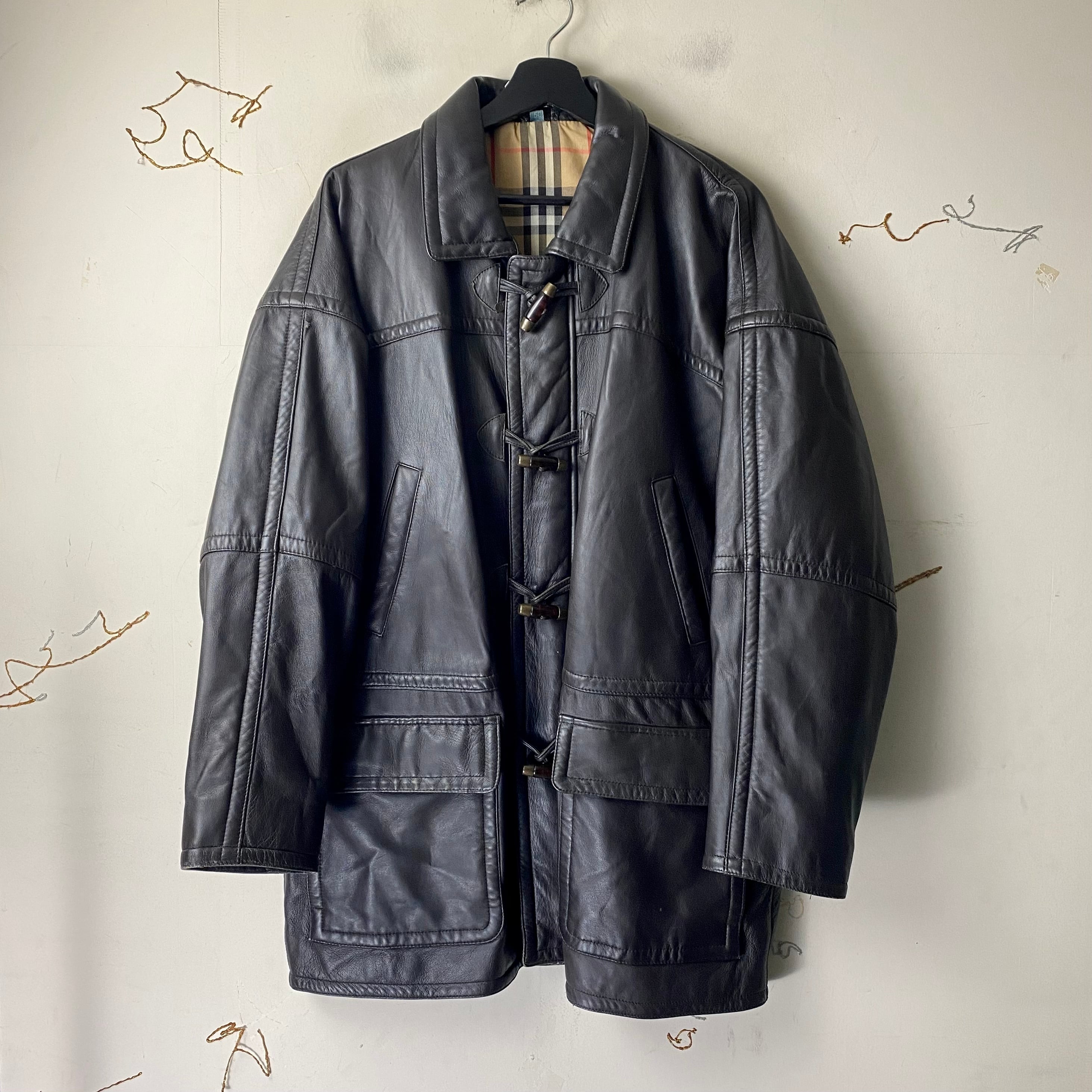 vintage BURBERRYS black leather duffle coat