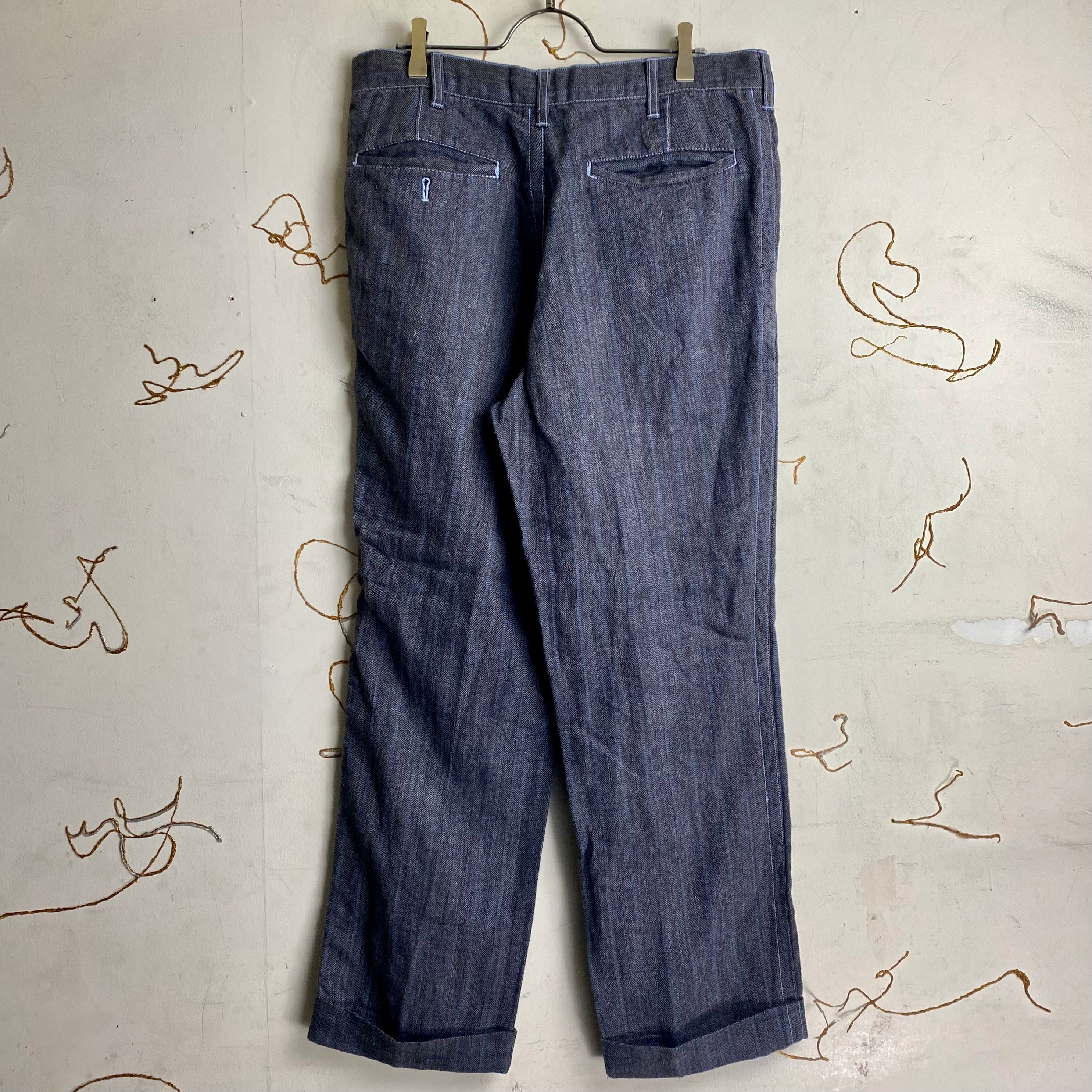 size : ジャケット表記S 実寸(肩幅44cm 身幅51.5cm 着丈72.5cm 袖丈63cm) パンツ表記M (ウエスト41cm 股上28cm 股下68cm ワタリ28.5cm 裾幅20cm)