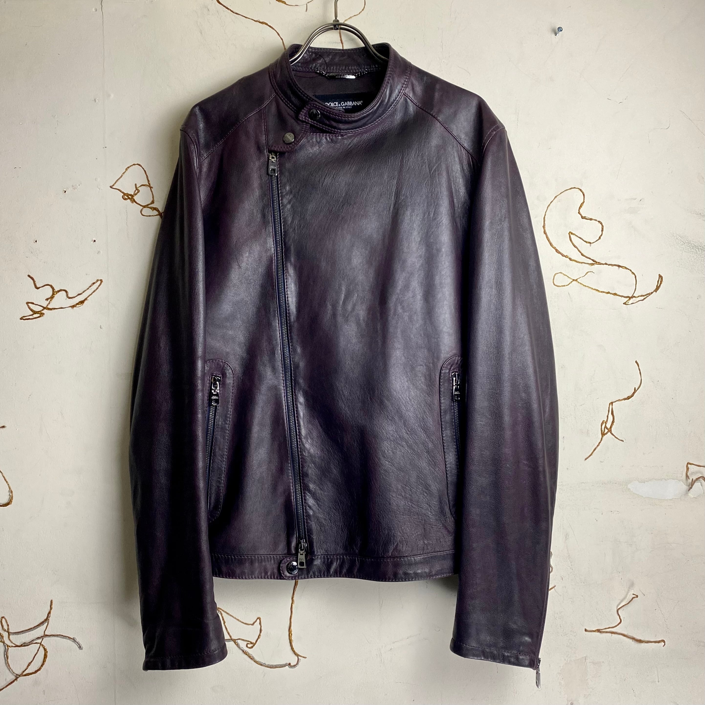 DOLCE&GABBANA purple color leather riders jacket
