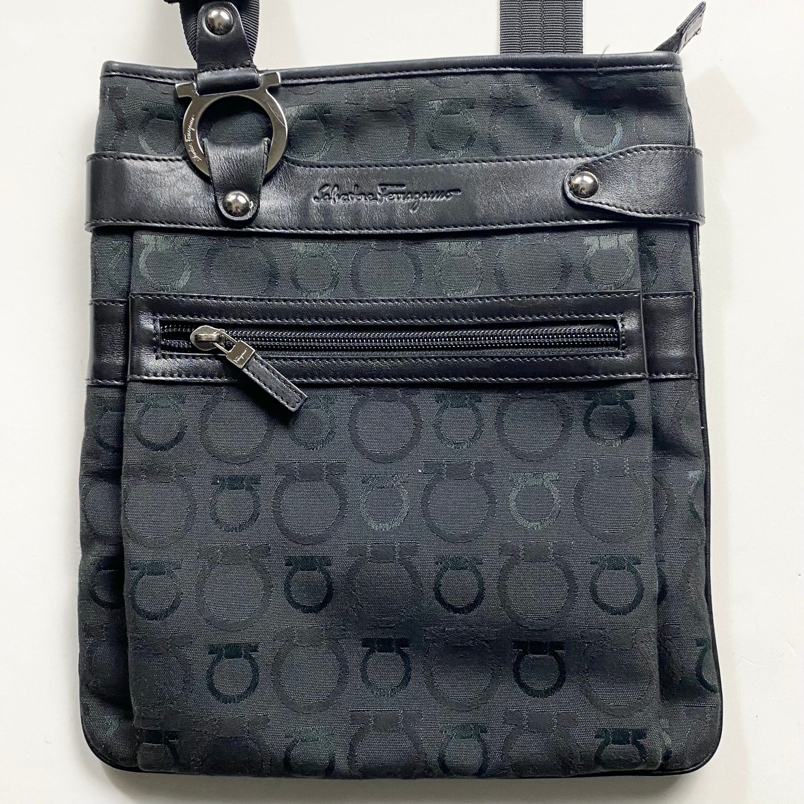 SALVATORE FERRAGAMO canvas × leather shoulder bag “gancini”