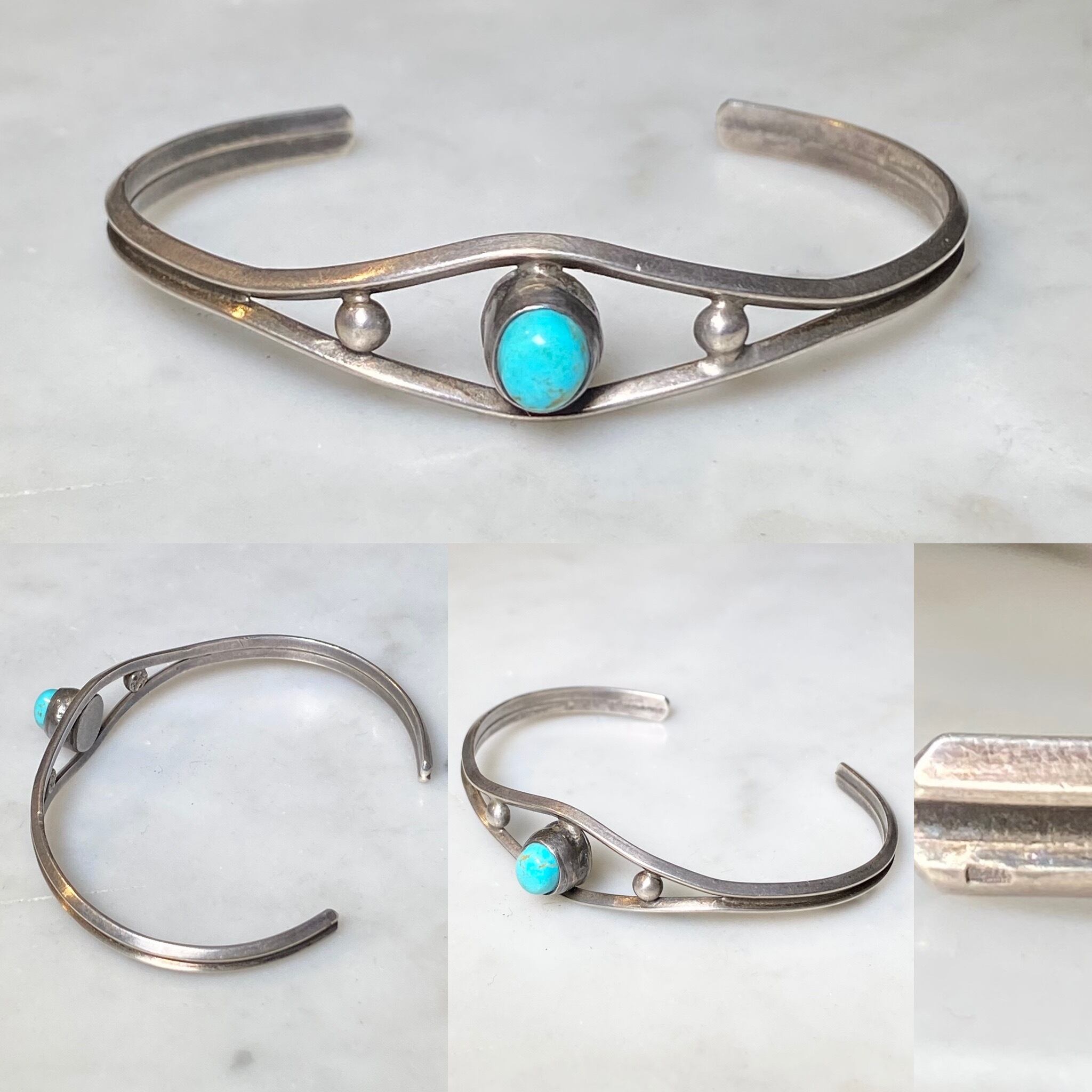 vintage silver open work bangle set with turquoise