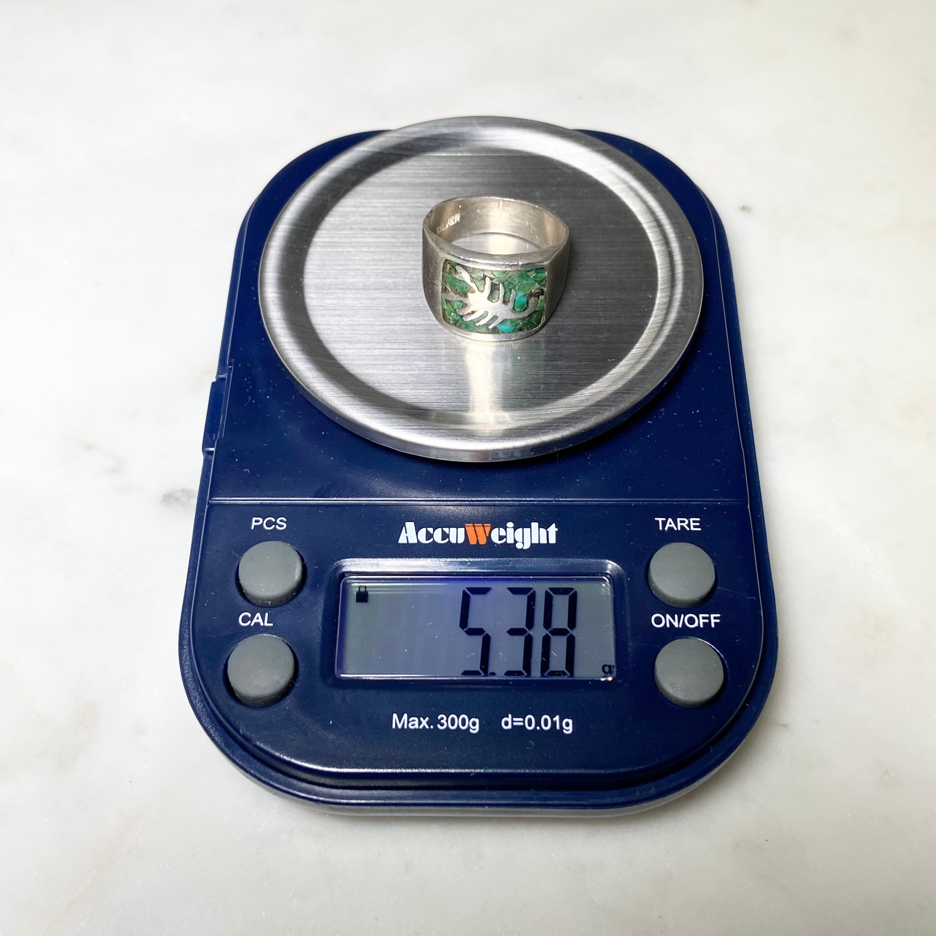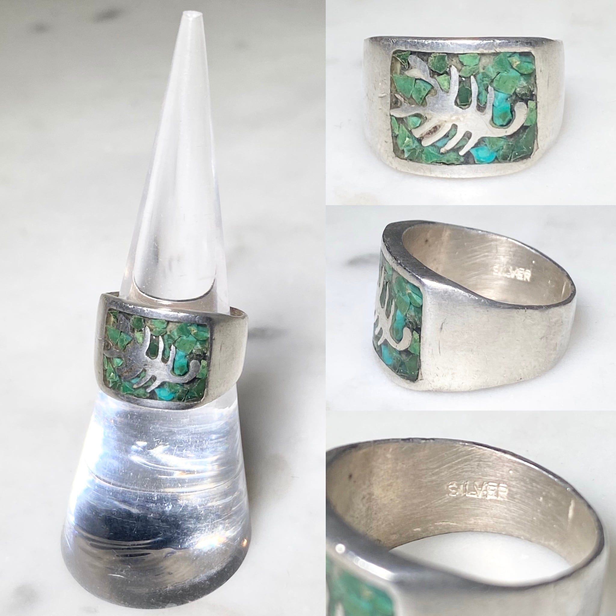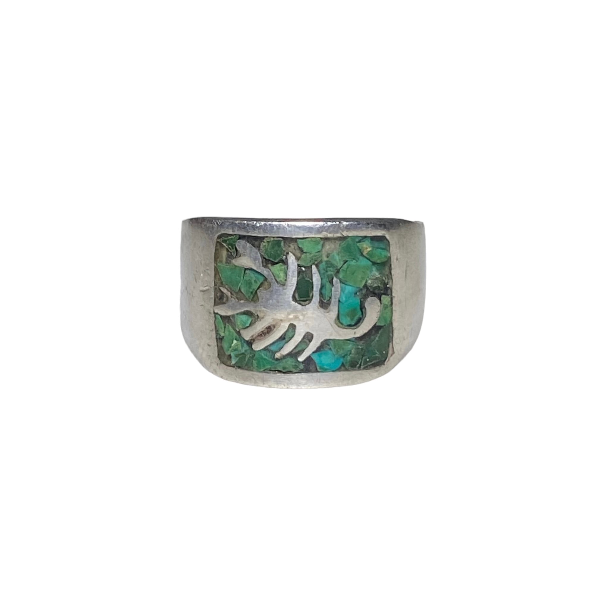 vintage silver tip inlay ring "scorpion" (size11, 5.38g)