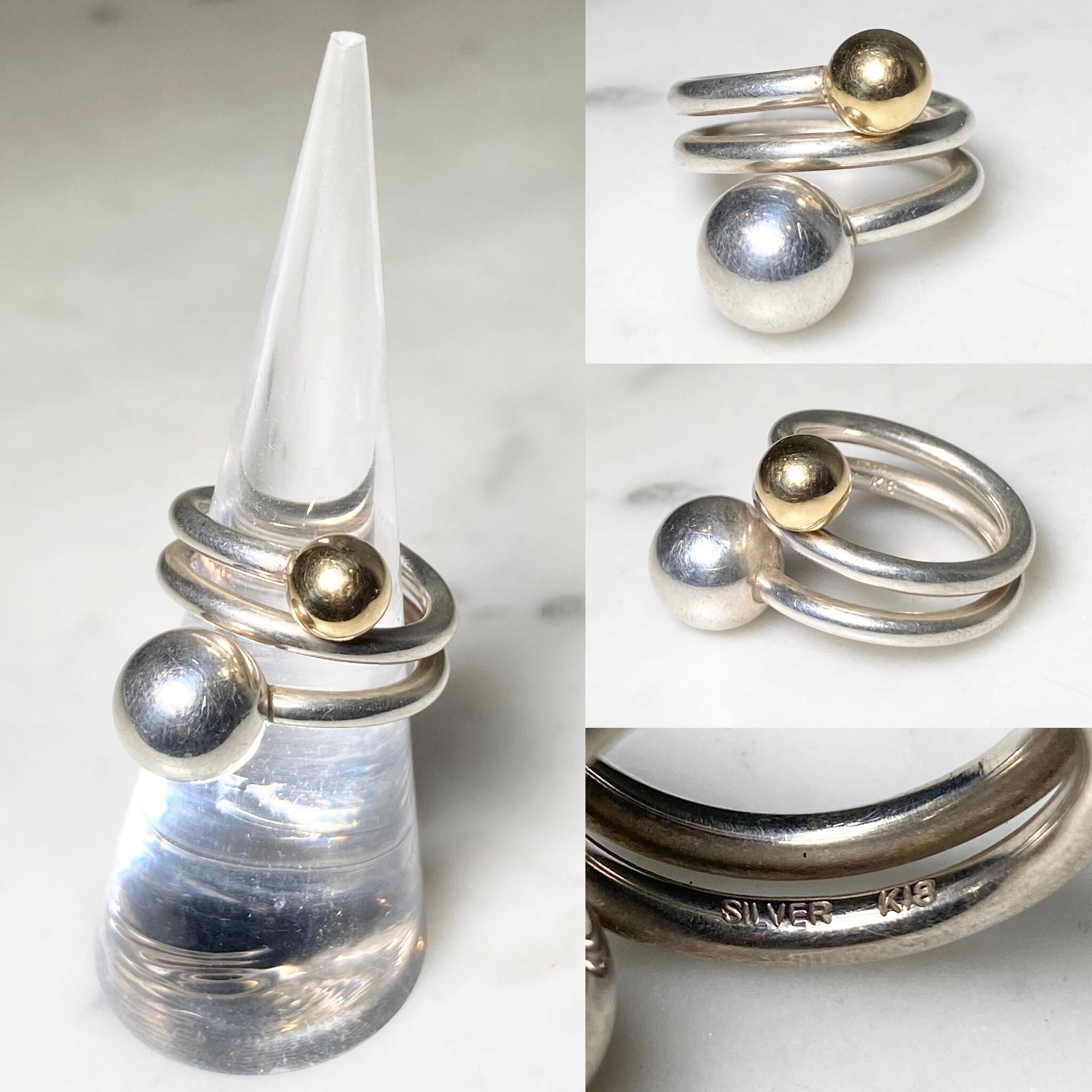 vintage silver × k18 coil ring (size10~11.5, 8.4g)