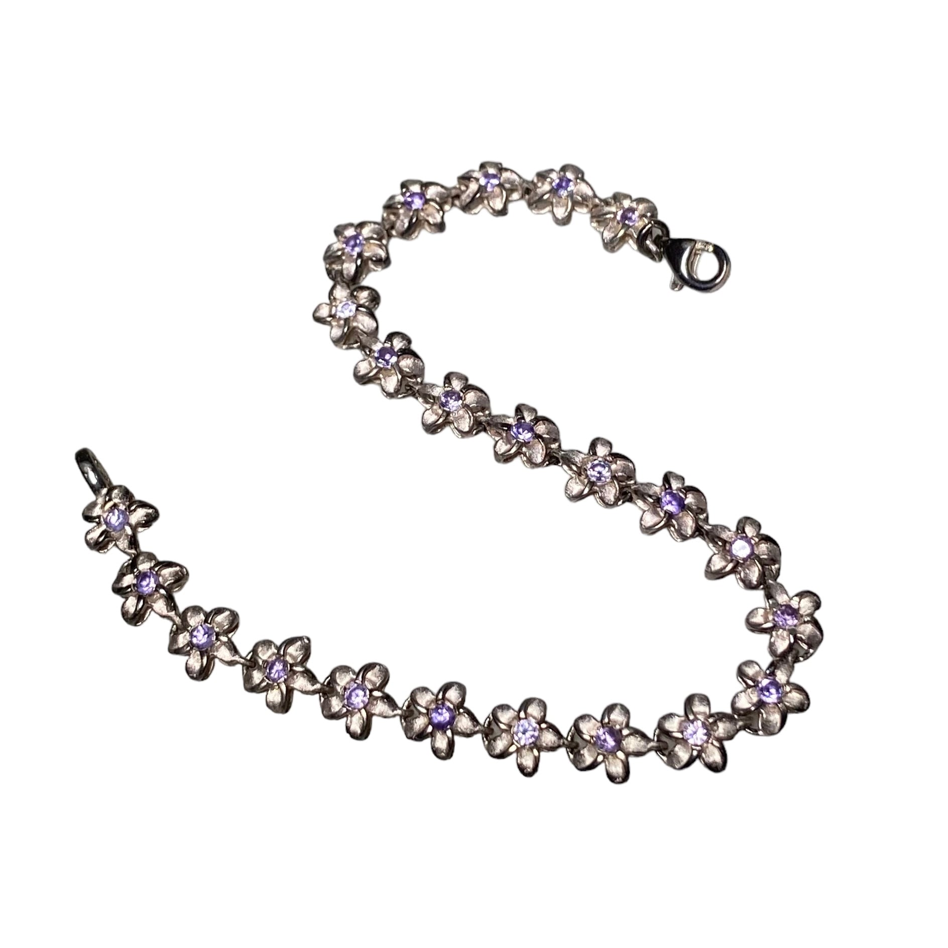 vintage silver flower link chain bracelet set with rhinestone (size17.6cm, 7.51g)
