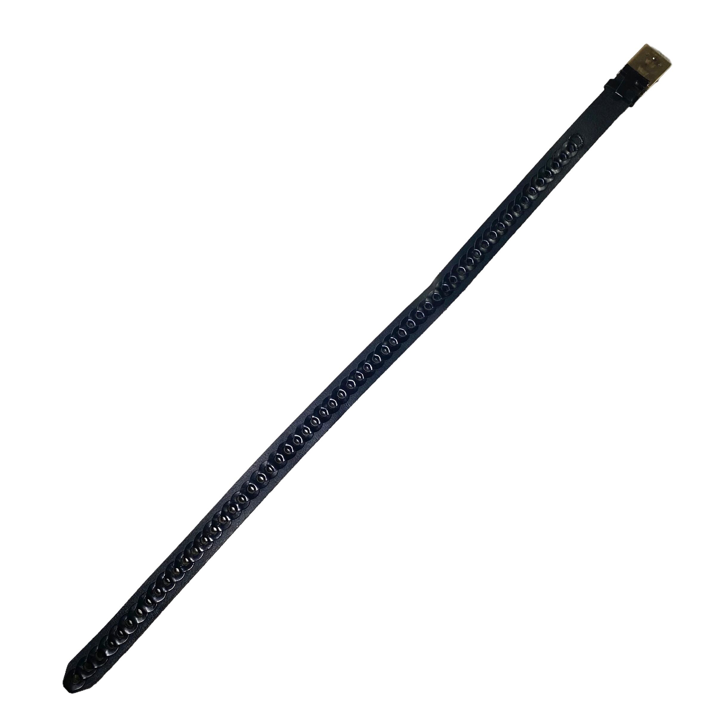 肉厚な黒レザーベルト全体に穴。
