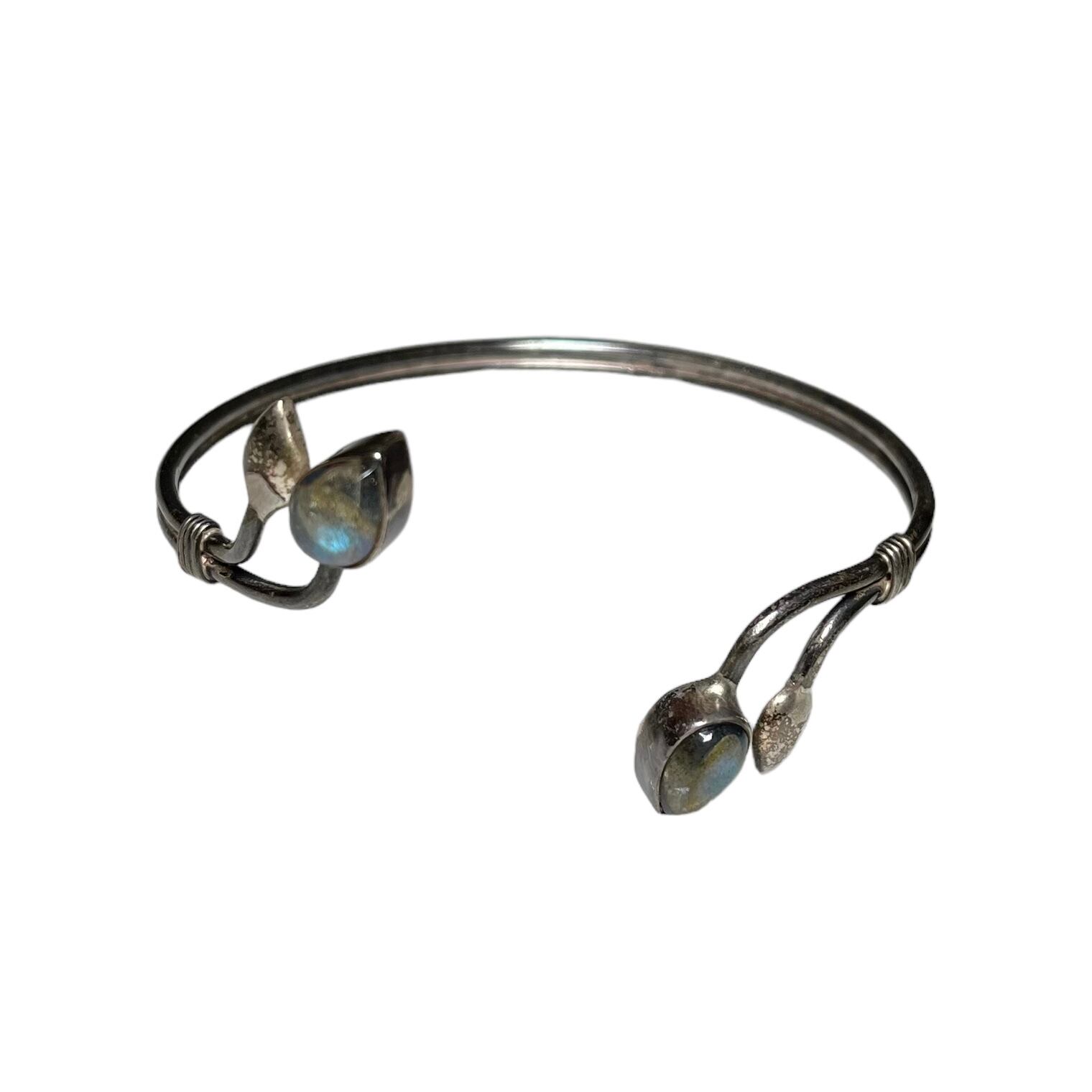 vintage plant motif silver labradorite bangle