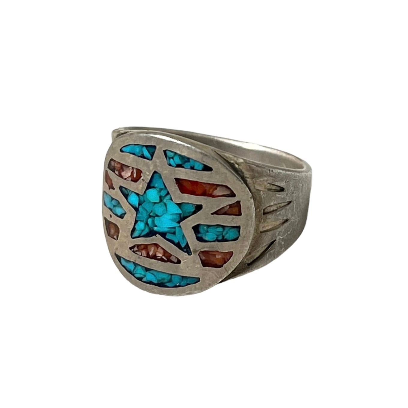 vintage silver tip inlay ring " star "