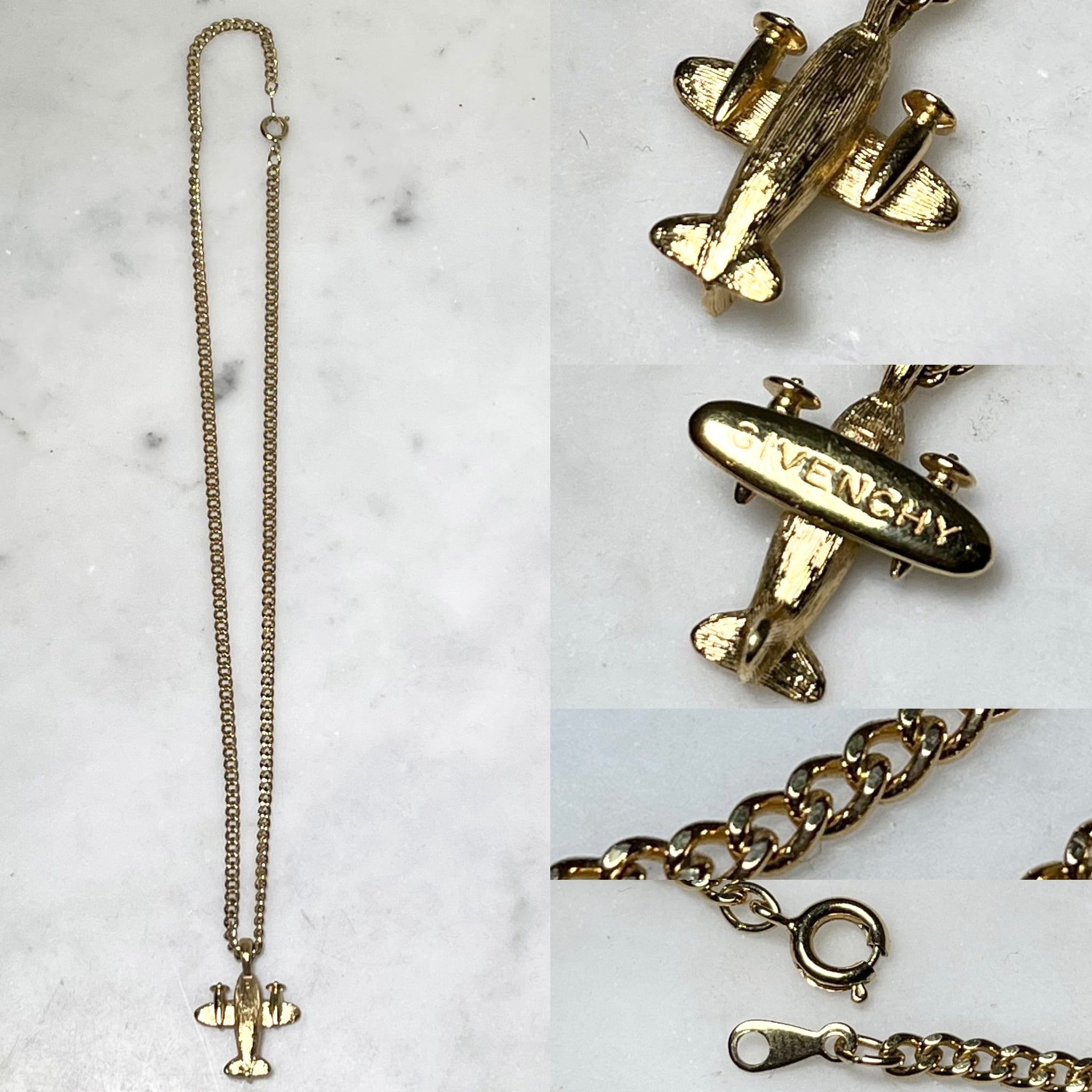 vintage GIVENCHY gold color metal plane motif pendant necklace