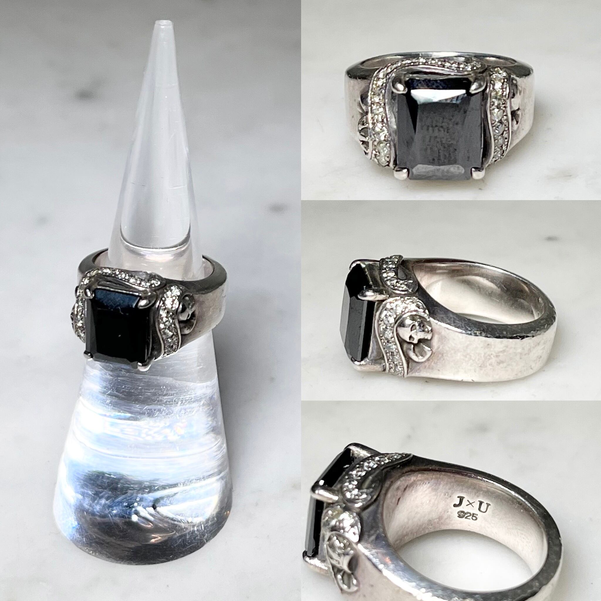 JUSTIN DAVIS heavy gauge silver ring set with zirconia " GLAM ROX "