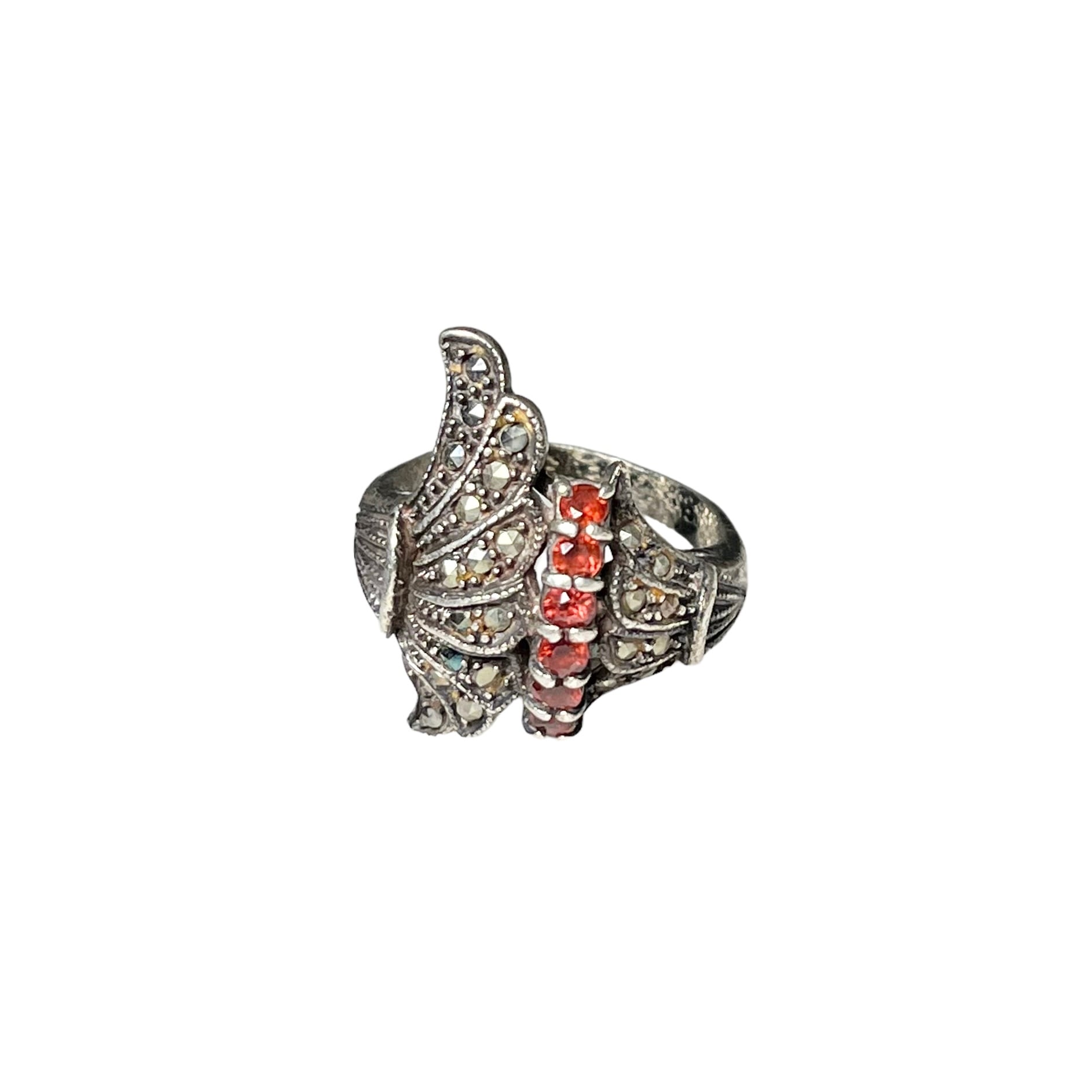 vintage silver antique style ring set with marcasite & rhinestone