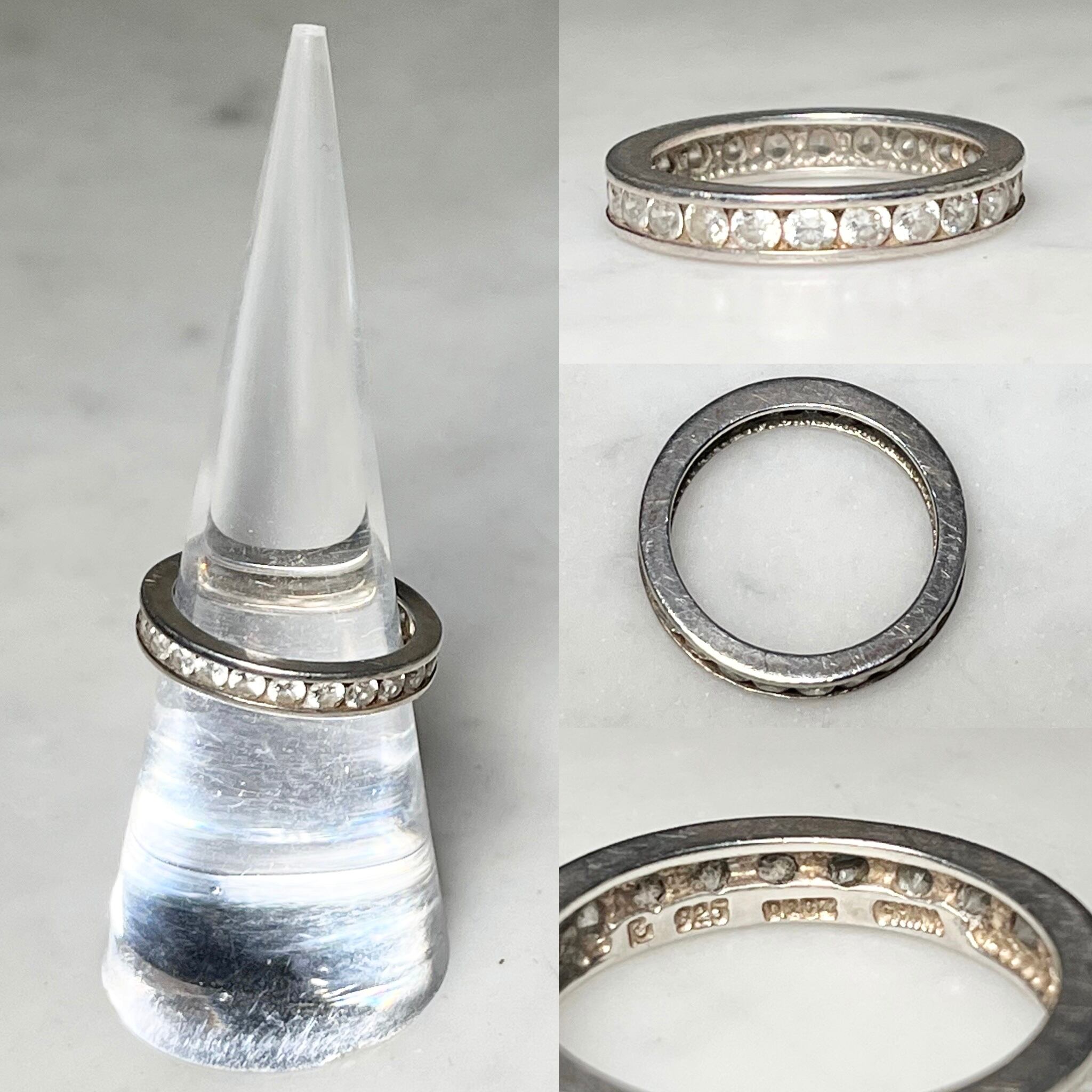vintage silver band ring set with rhinestone