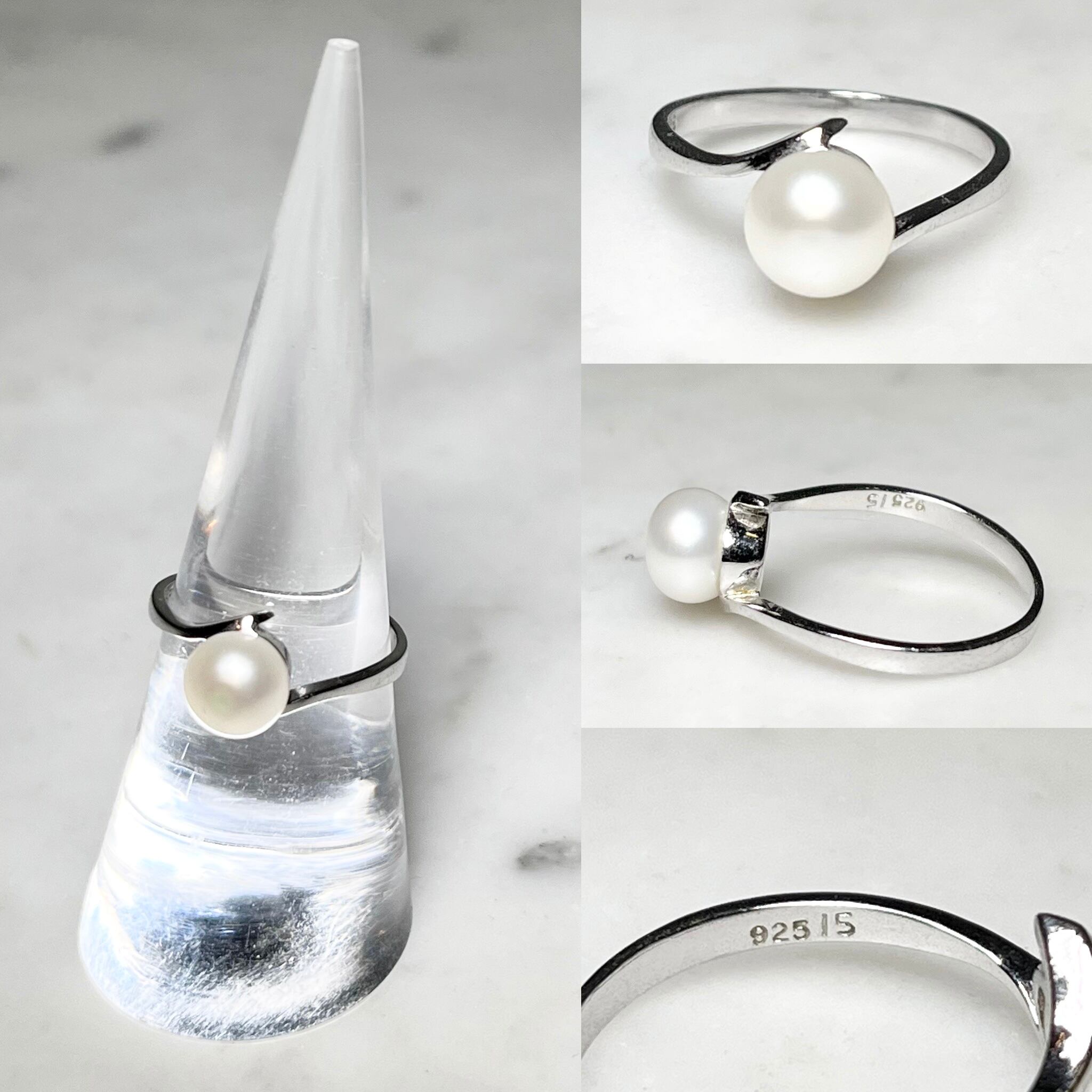 vintage silver ring set with fake pearl