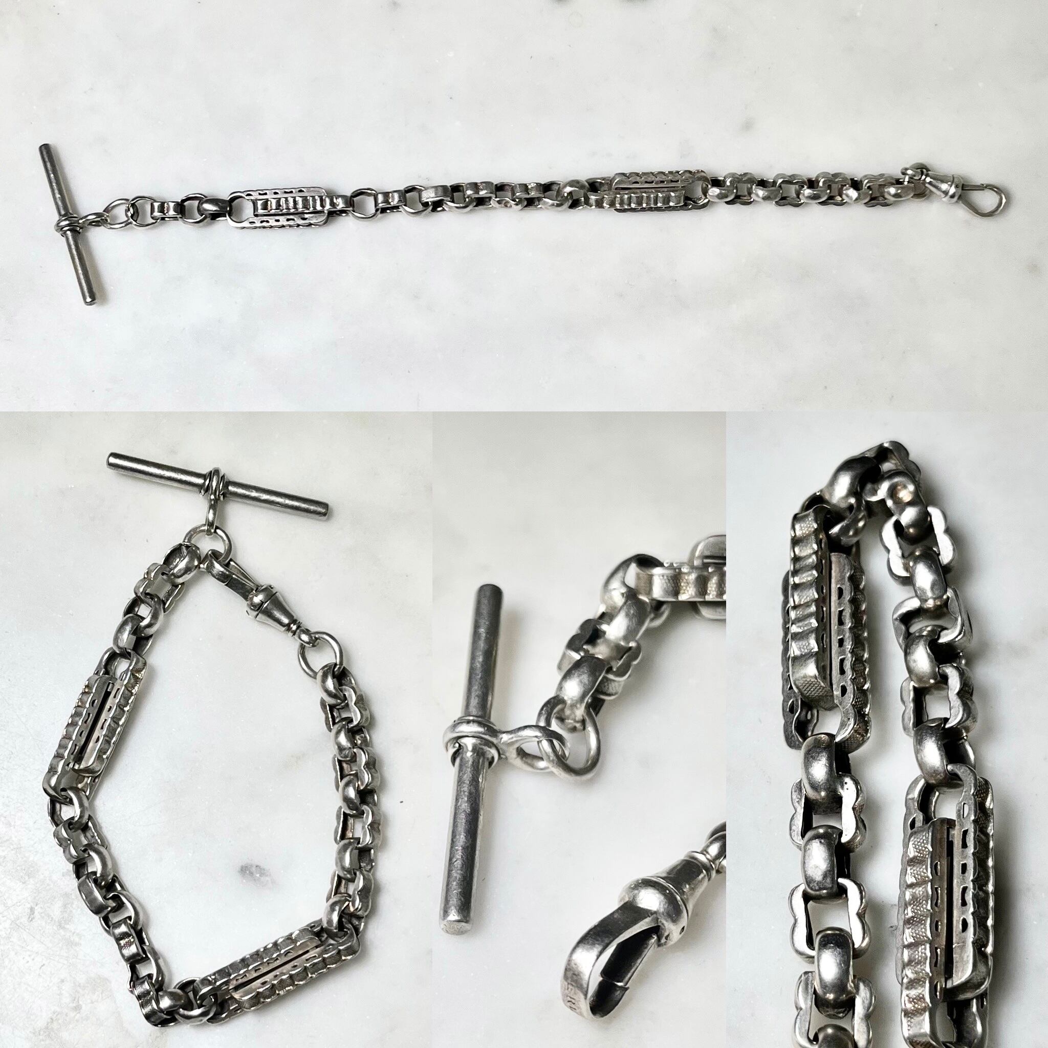 antique c1900 fancy link silver chain bracelet
