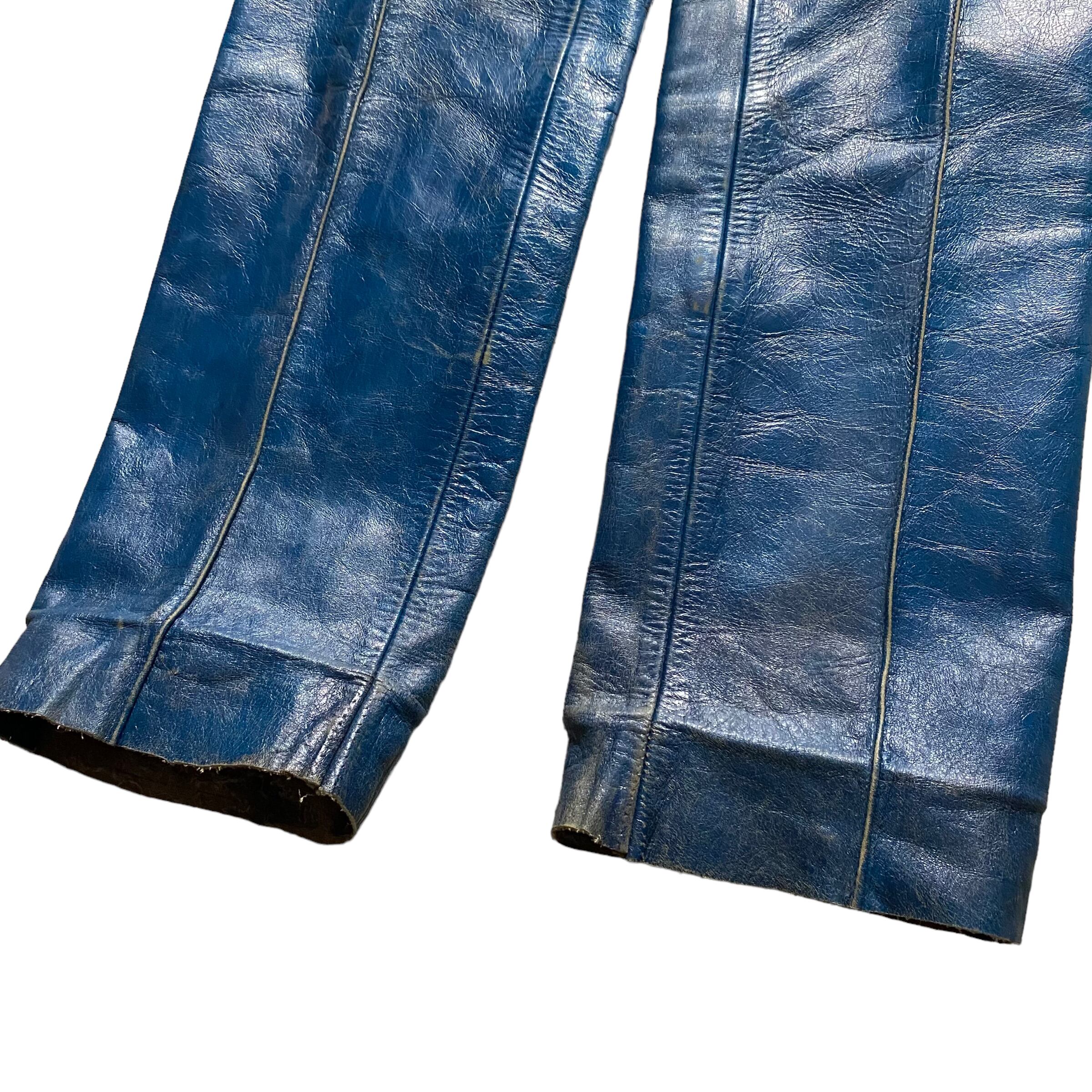 青レザーパンツ。