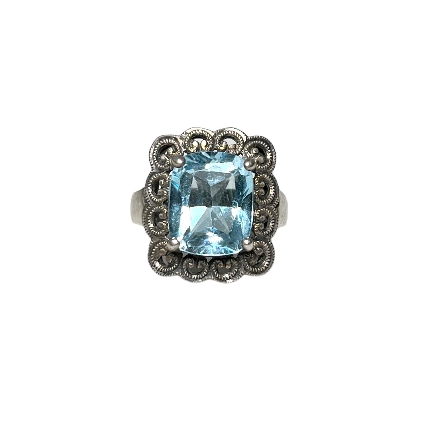 vintage silver antique style ring set with rhinestone