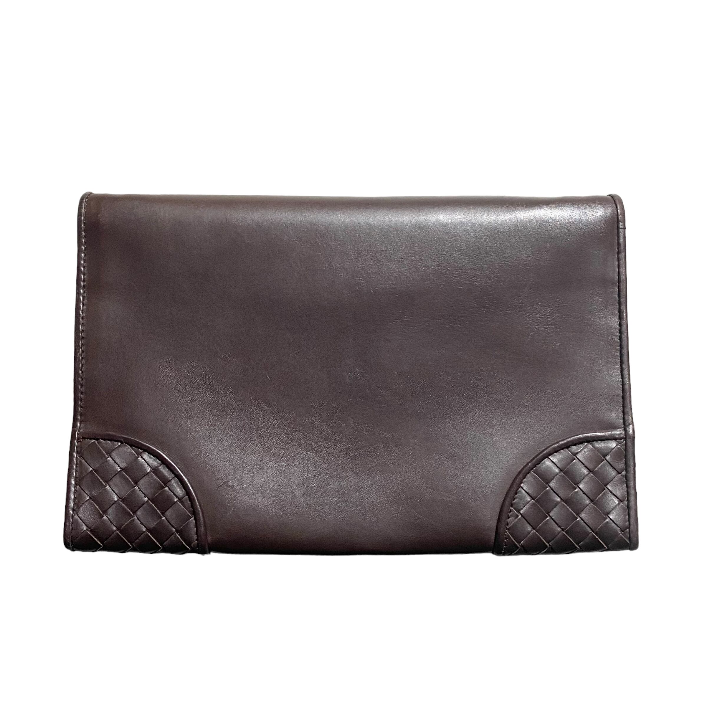 BOTTEGA VENETA dark brown leather clutch bag