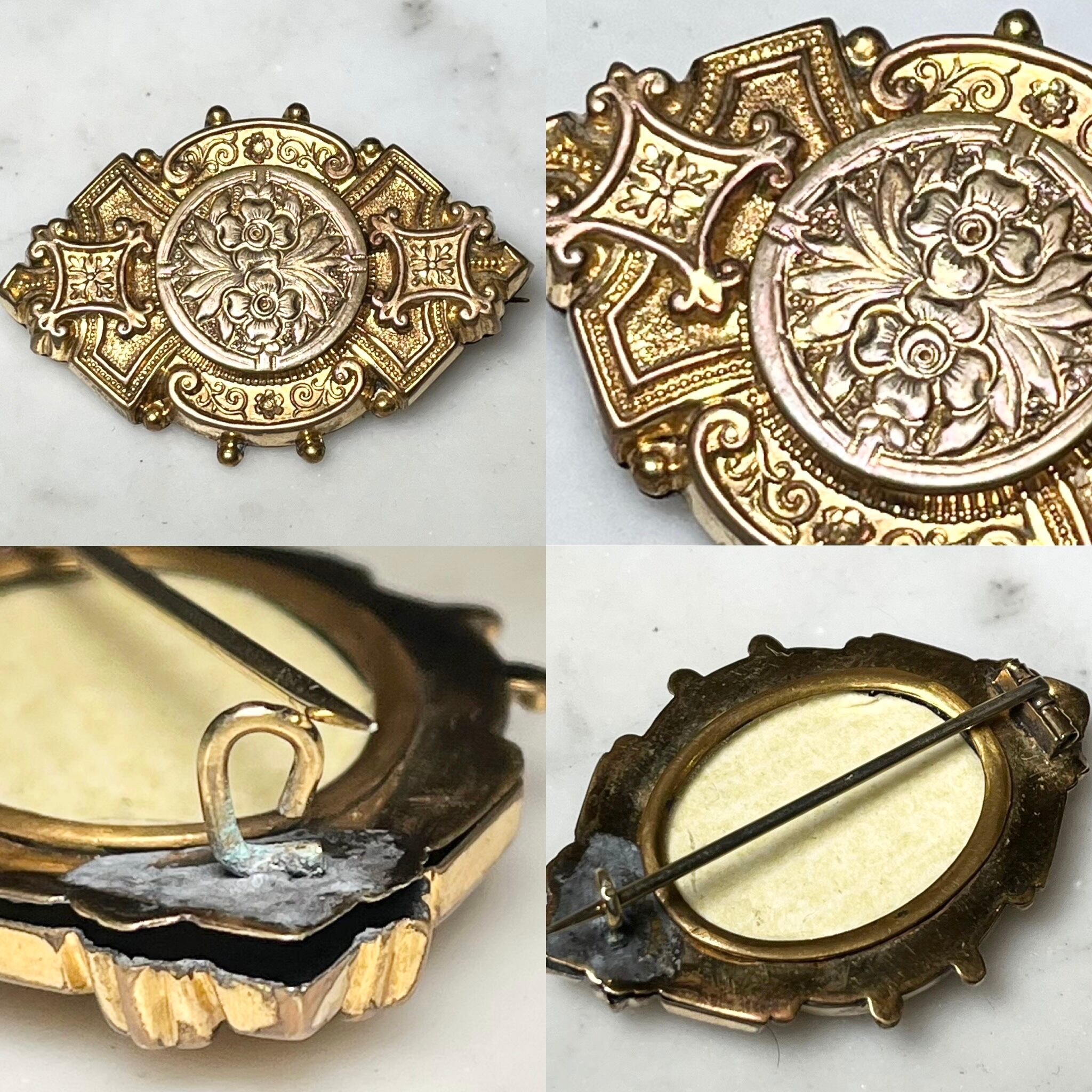 antique metal engraved brooch