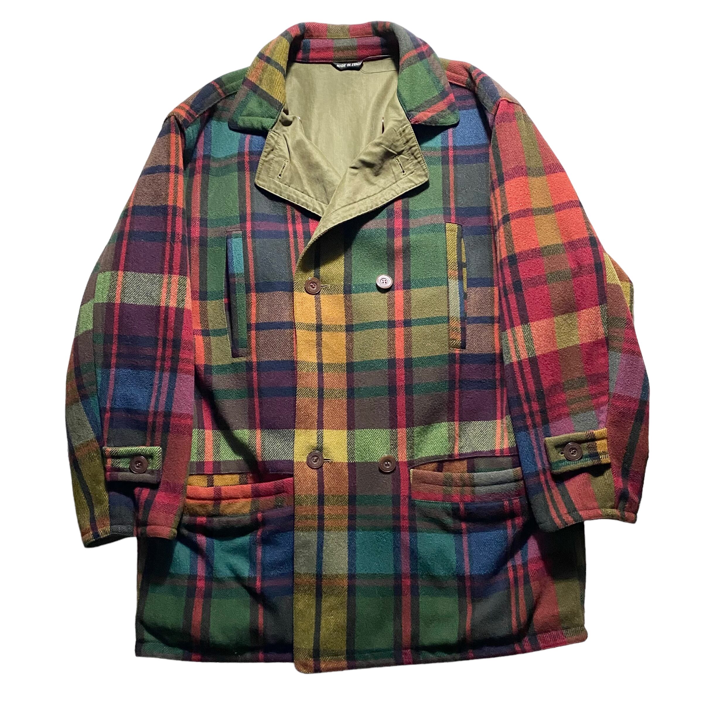 vintage VERSACE SPORT check wool × peach skin reversible coat