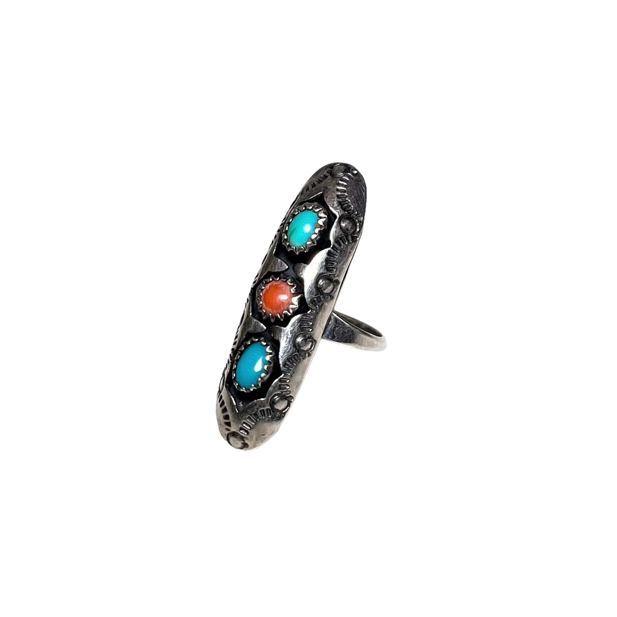 navajo silver turquoise & coral ring