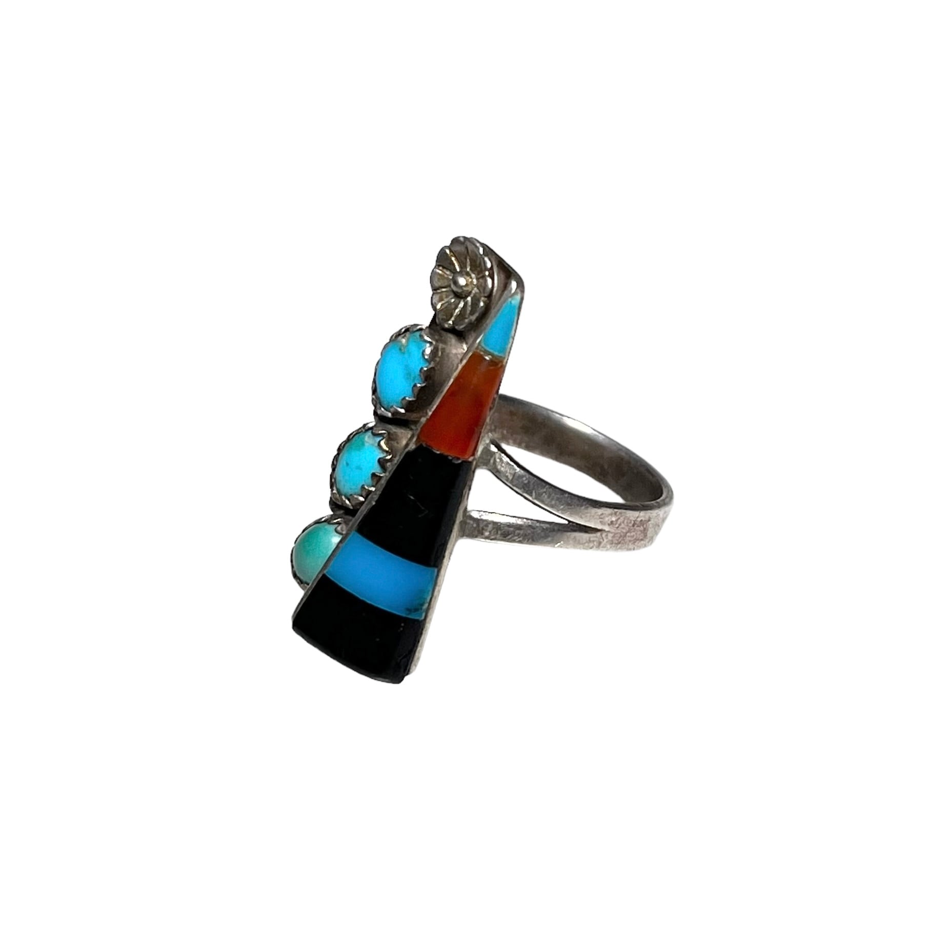 navajo silver onyx & turquoise inlay ring