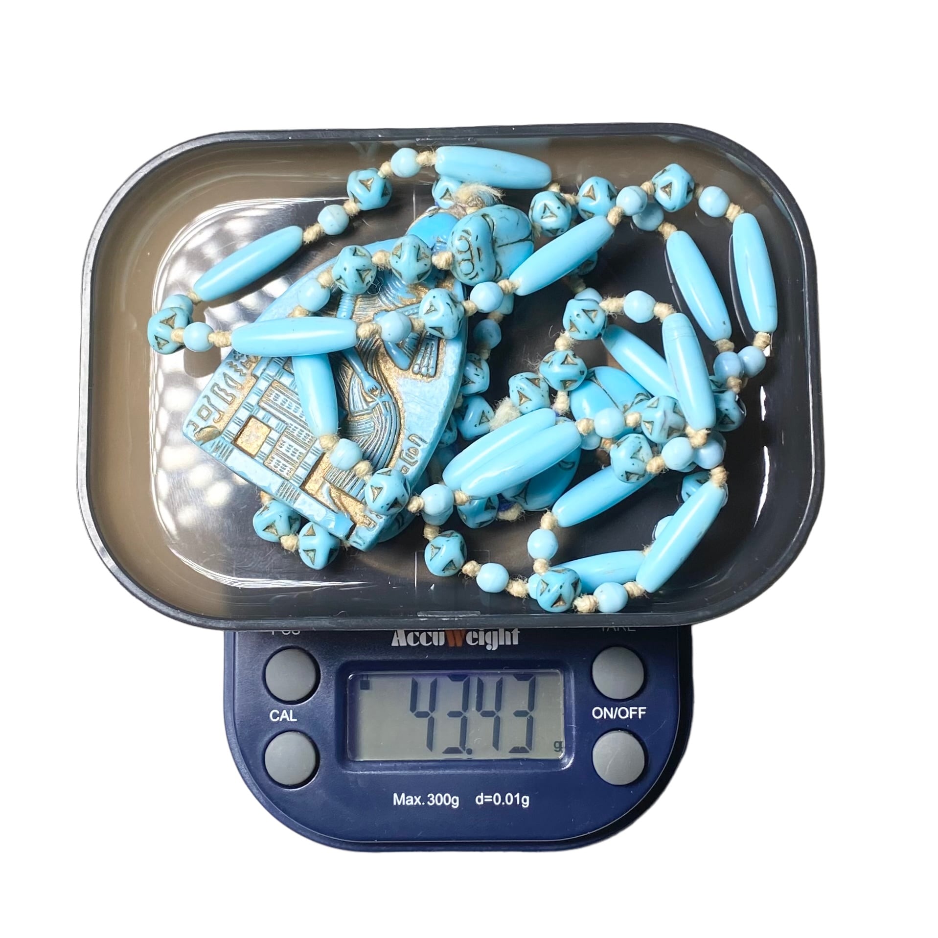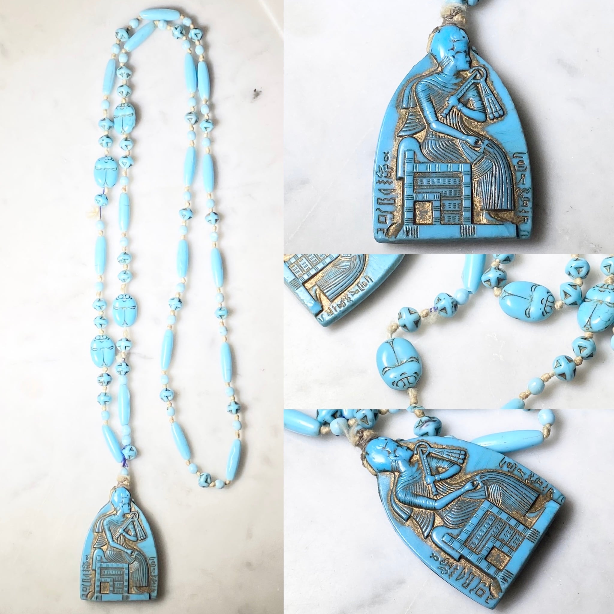 antique c1920 turquoise pendant & beads chain necklace “Egyptian Revival”