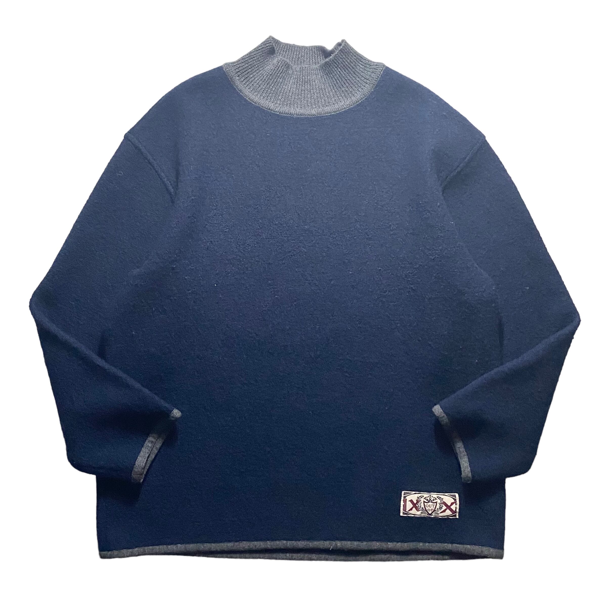 vintage back embroidery fulling wool oversized hi-neck sweater