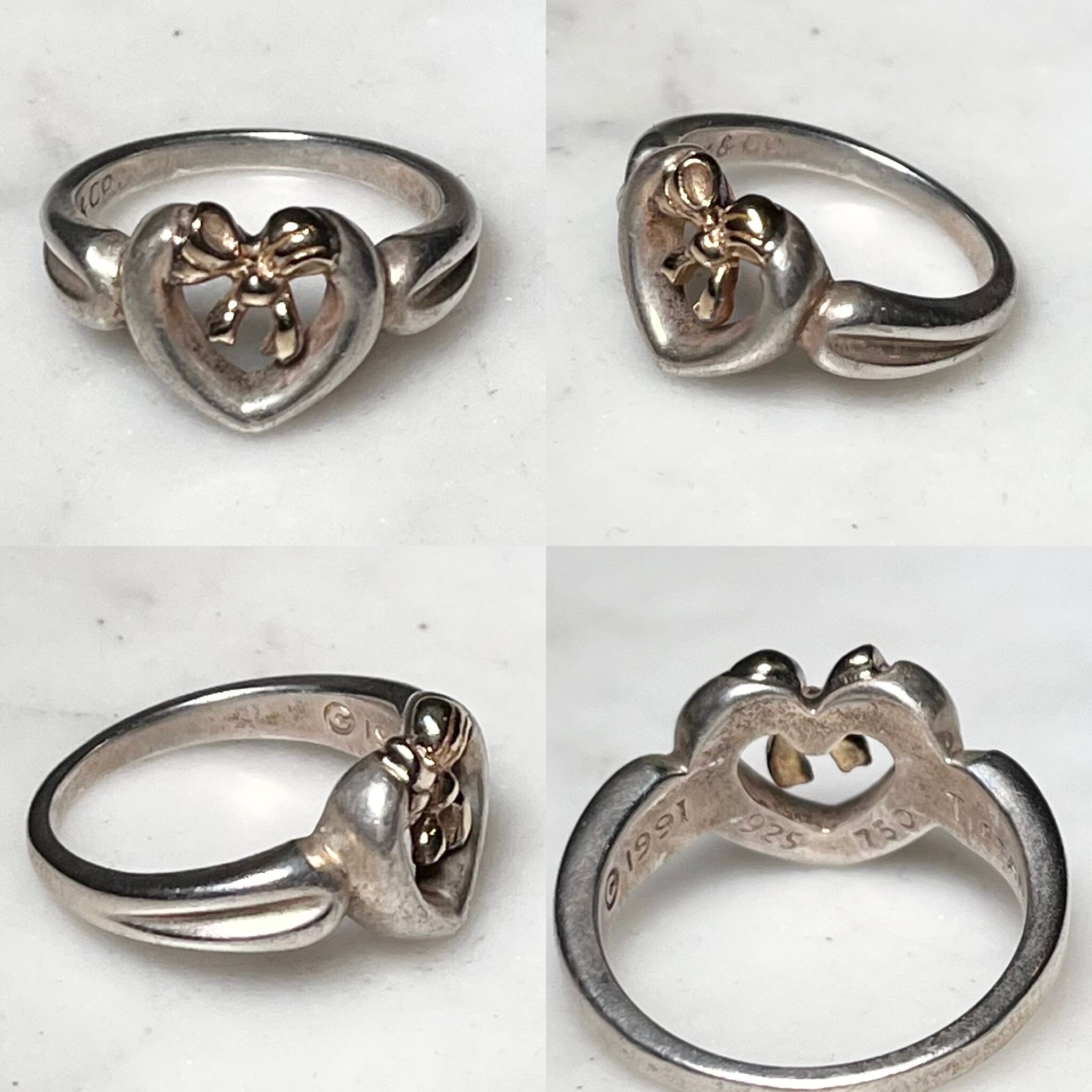 vintage 1991's TIFFANY silver × k18 heart&ribbon ring