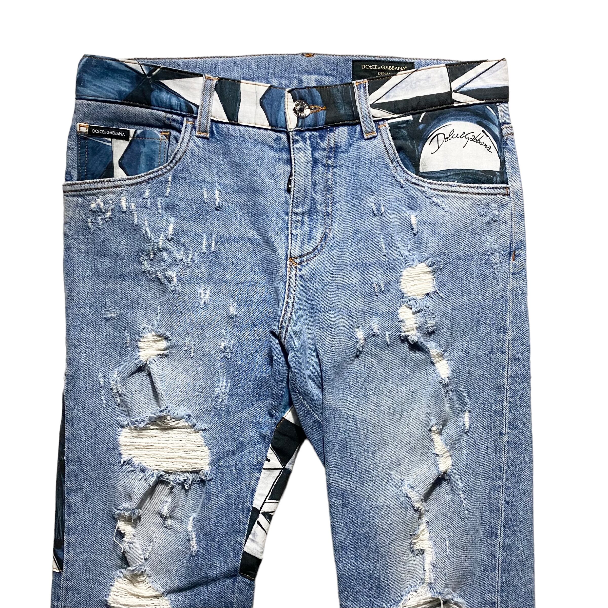 2021SS DOLCE&GABBANA patchwork denim pants “Ceramic Tile”