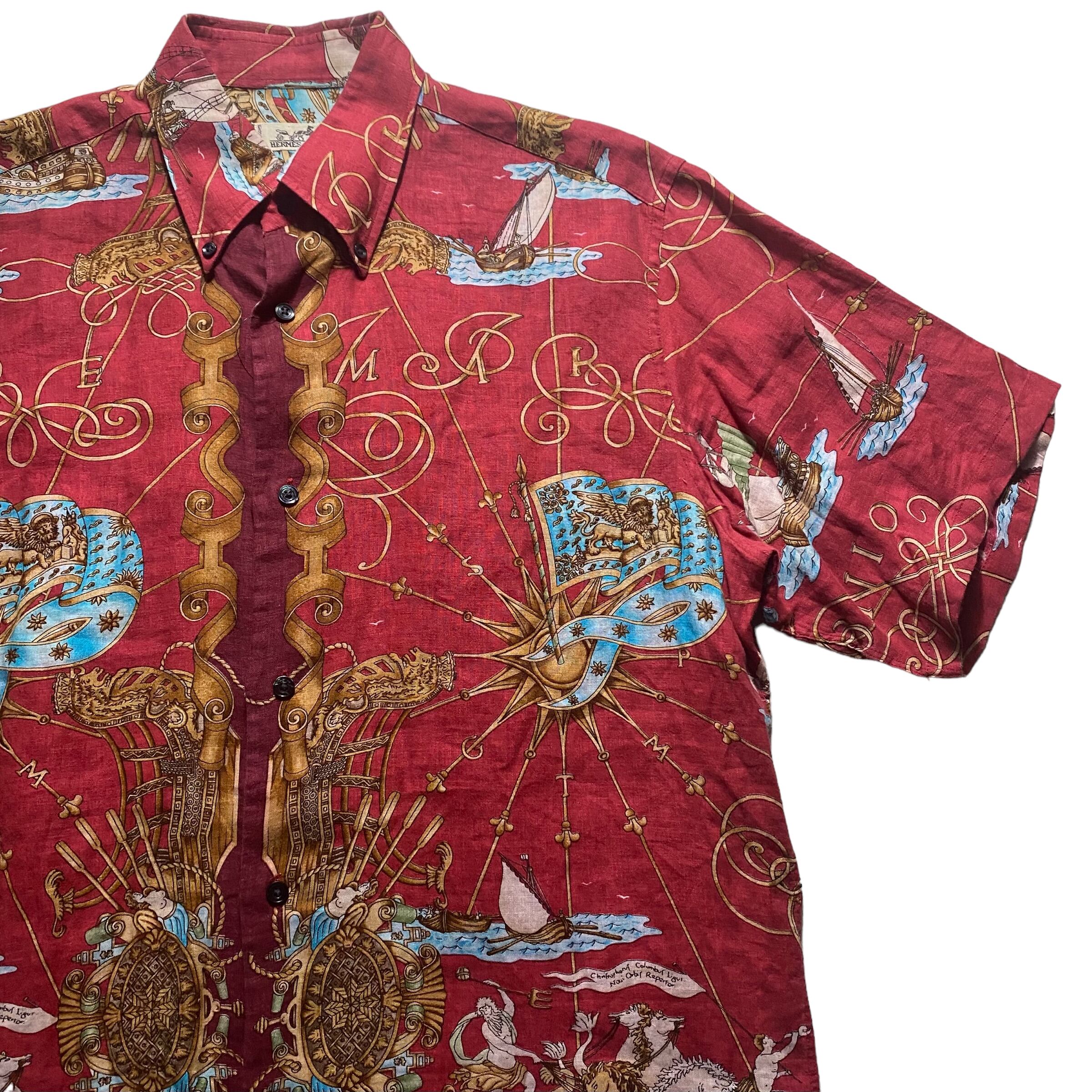 vintage HERMES scarf pattern S/S linen shirt “VOILES DE LUMIÈRE”