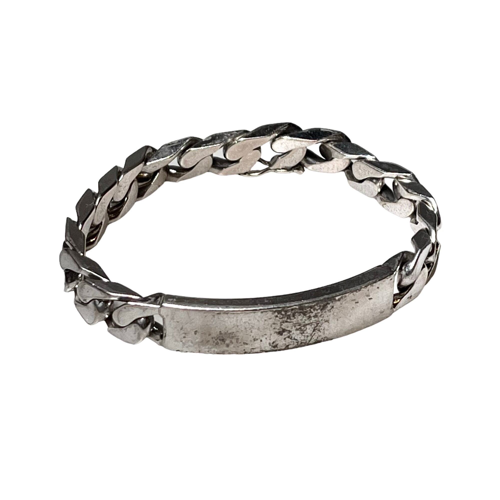 vintage heavy gauge silver flat link chain ID bracelet