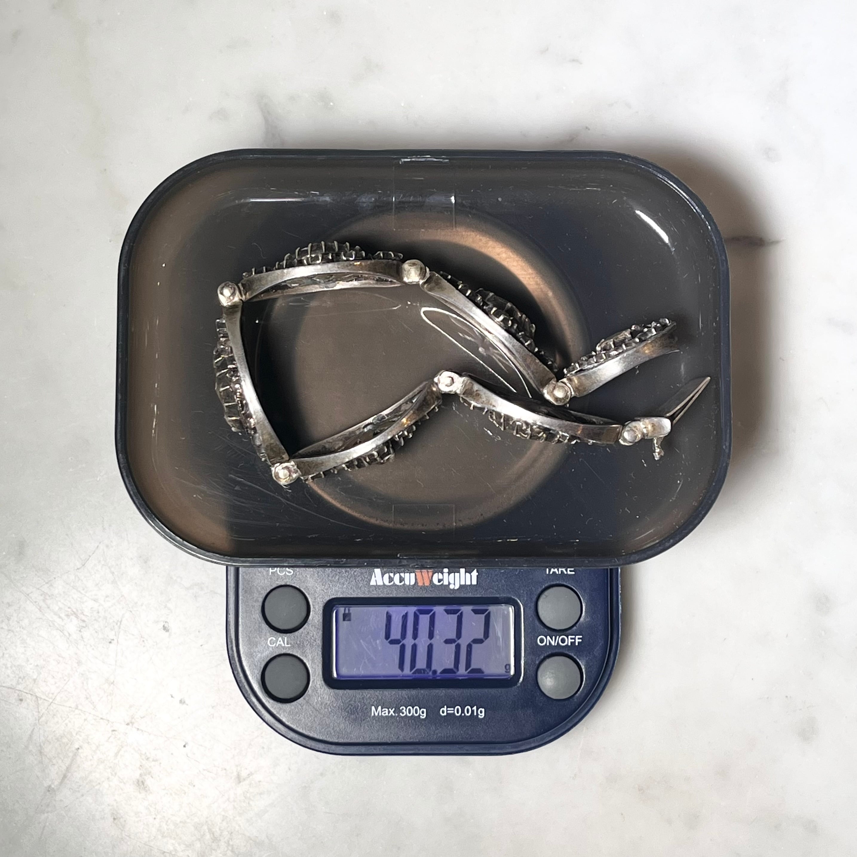 antique c1900 hungarian silver bracelet set with rose-cut diamond