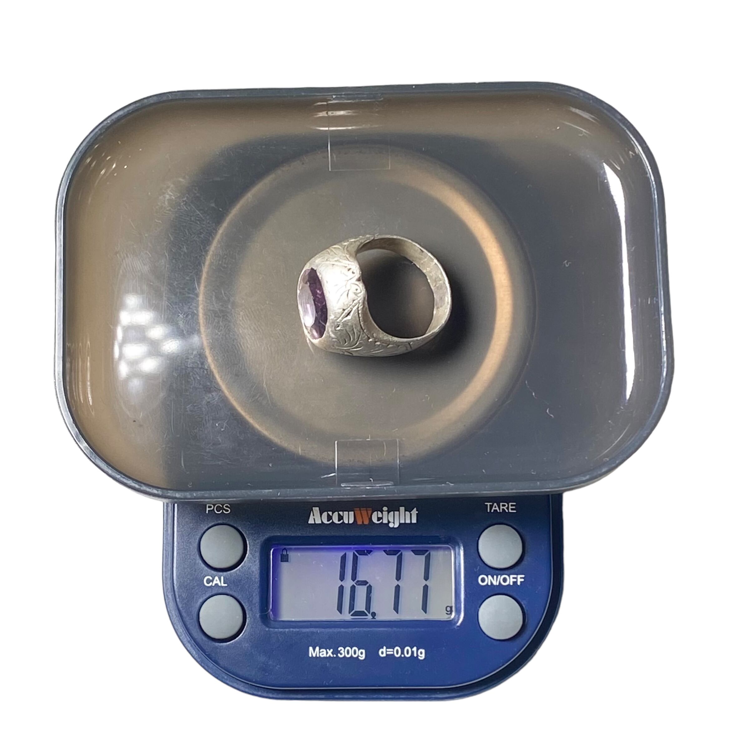 vintage heavy gauge silver amethyst color glass ring