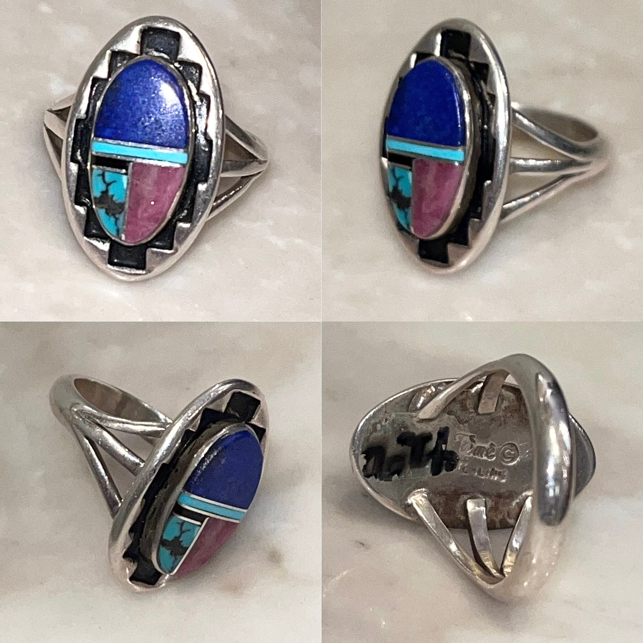 TEME silver stone inlay ring