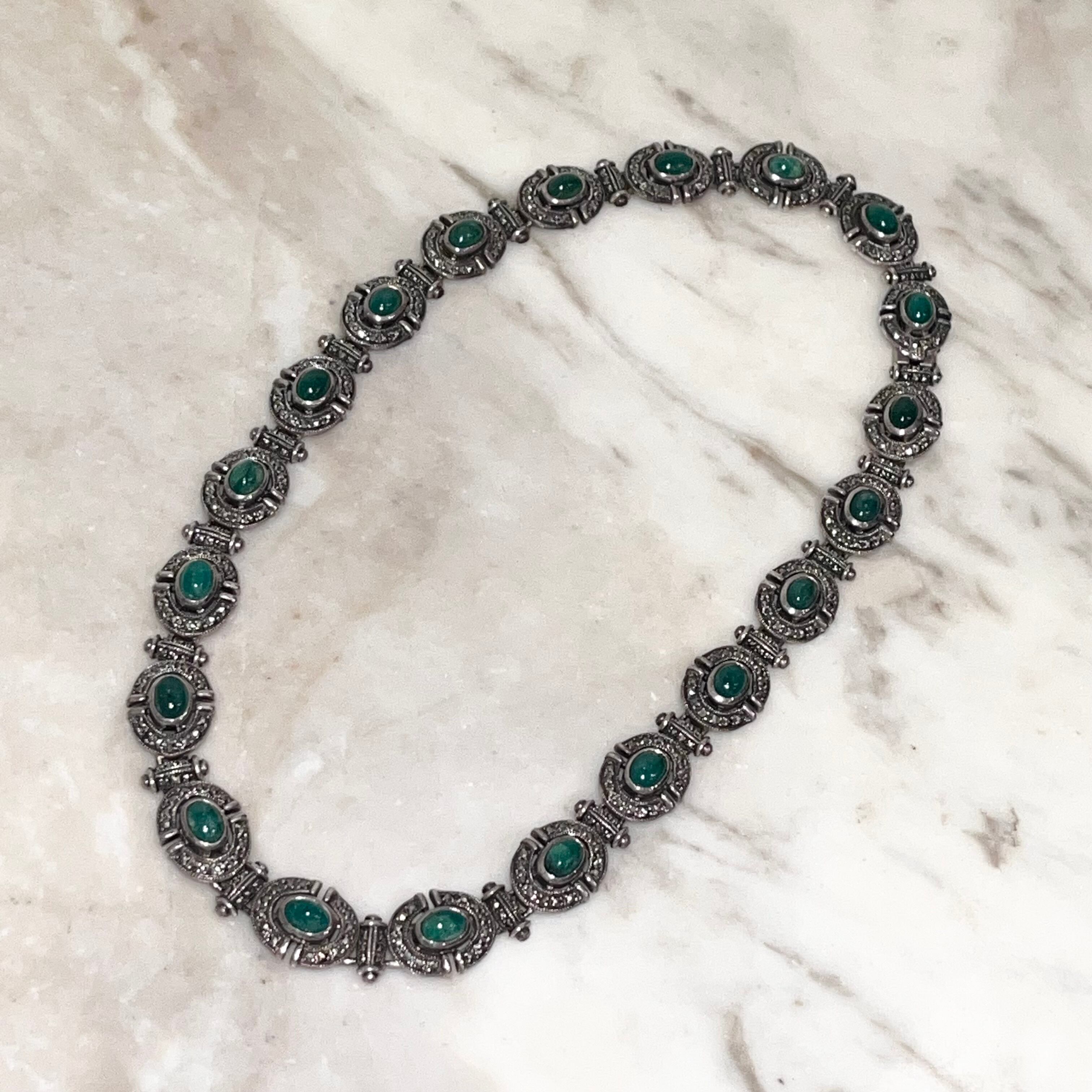 vintage heavy gauge silver necklace set with malachite & marcasite
