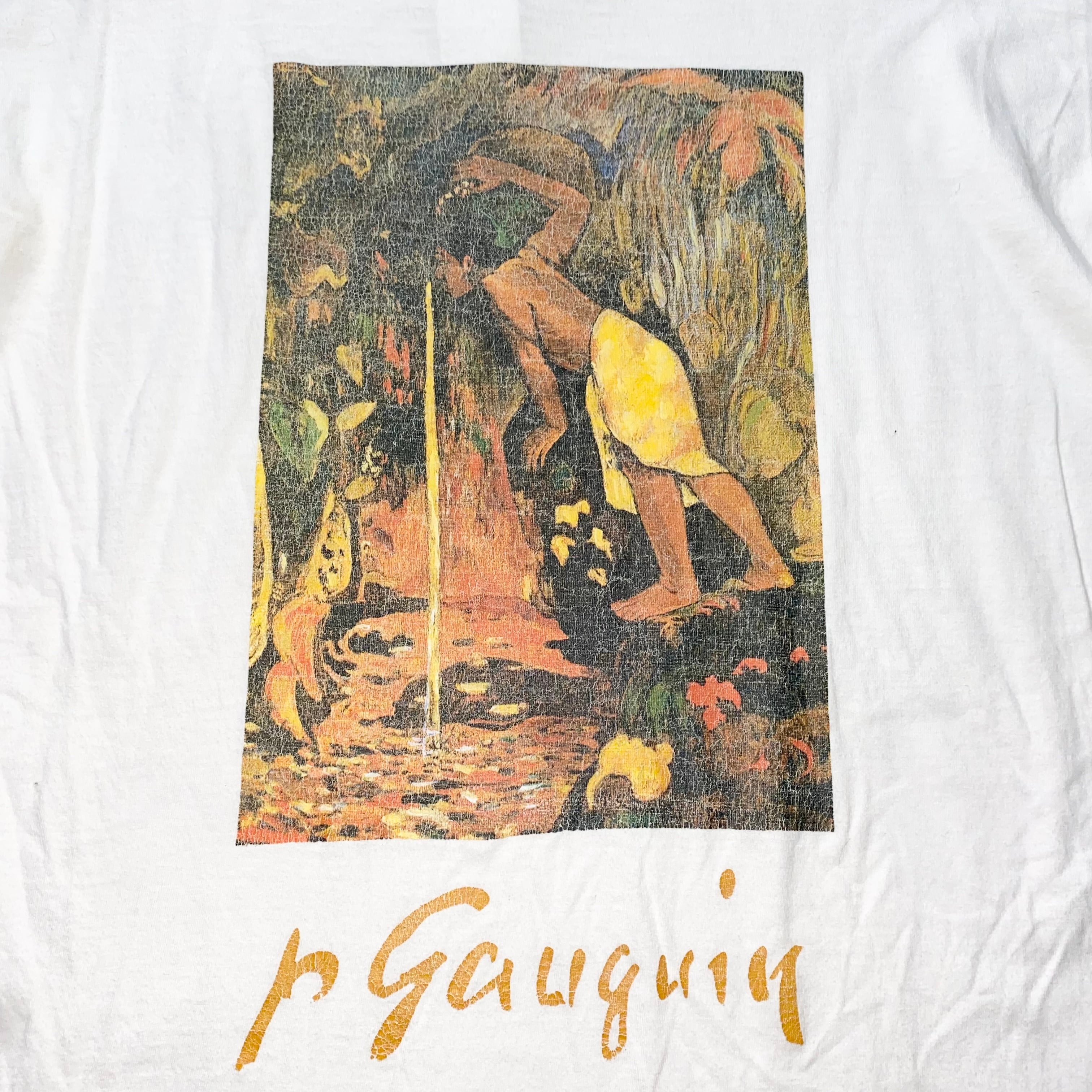 ゴーギャンのTシャツ自体は珍しくはないですがバックプリントなのと作品のトリミングがレアな一着です。