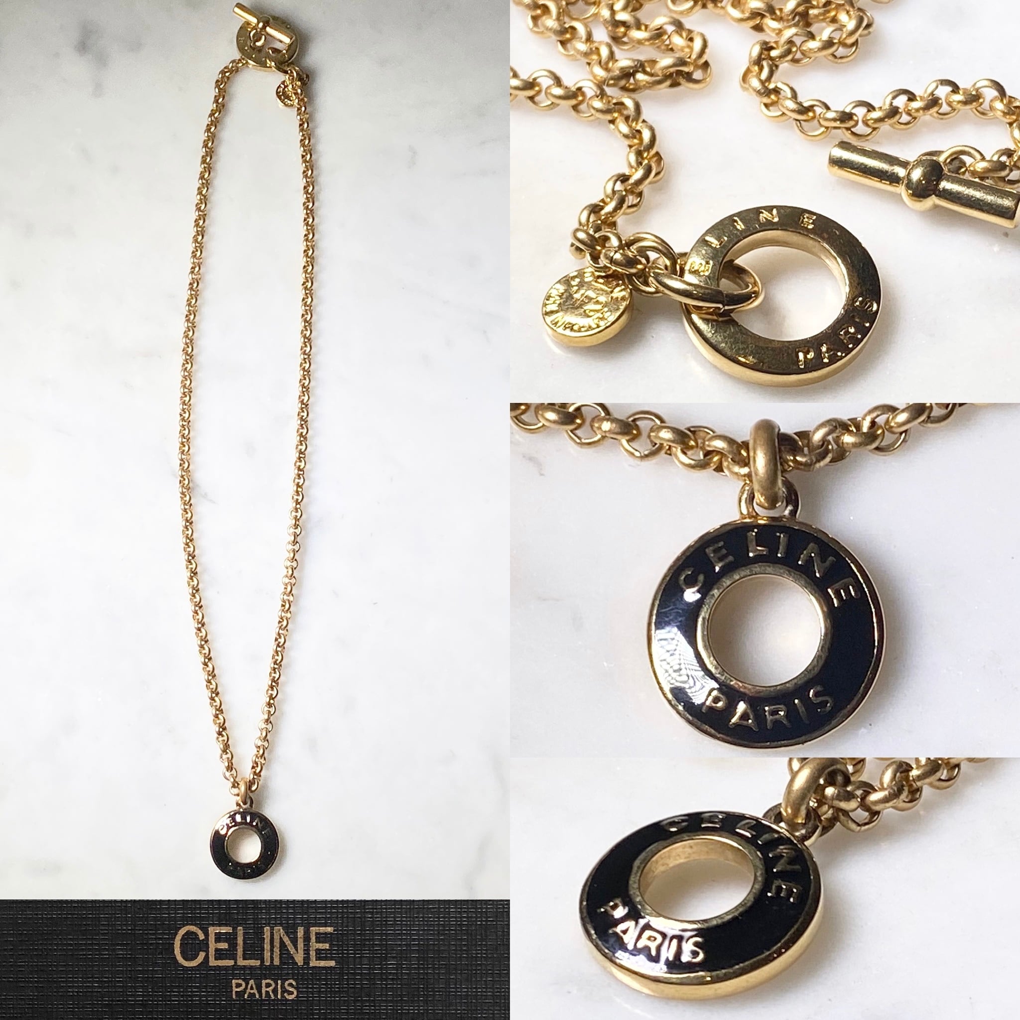 vintage CELINE “Circle Logo” pendant toggle necklace