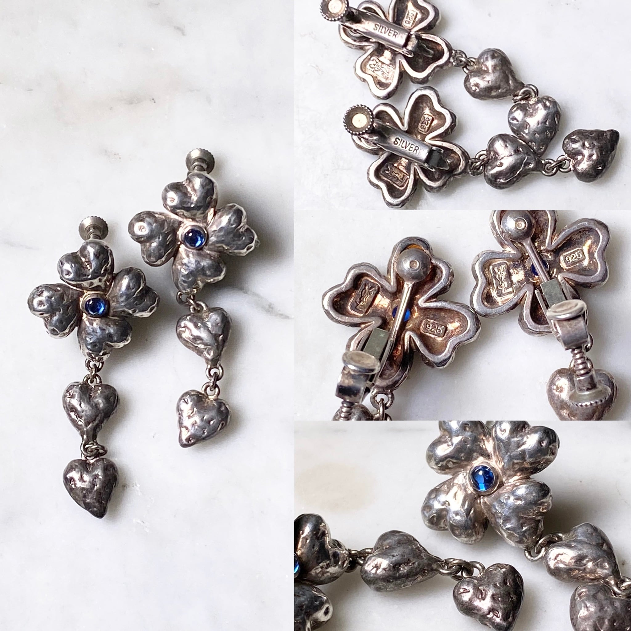 vintage YVES SAINT LAURENT silver earrings “Heart Flower”