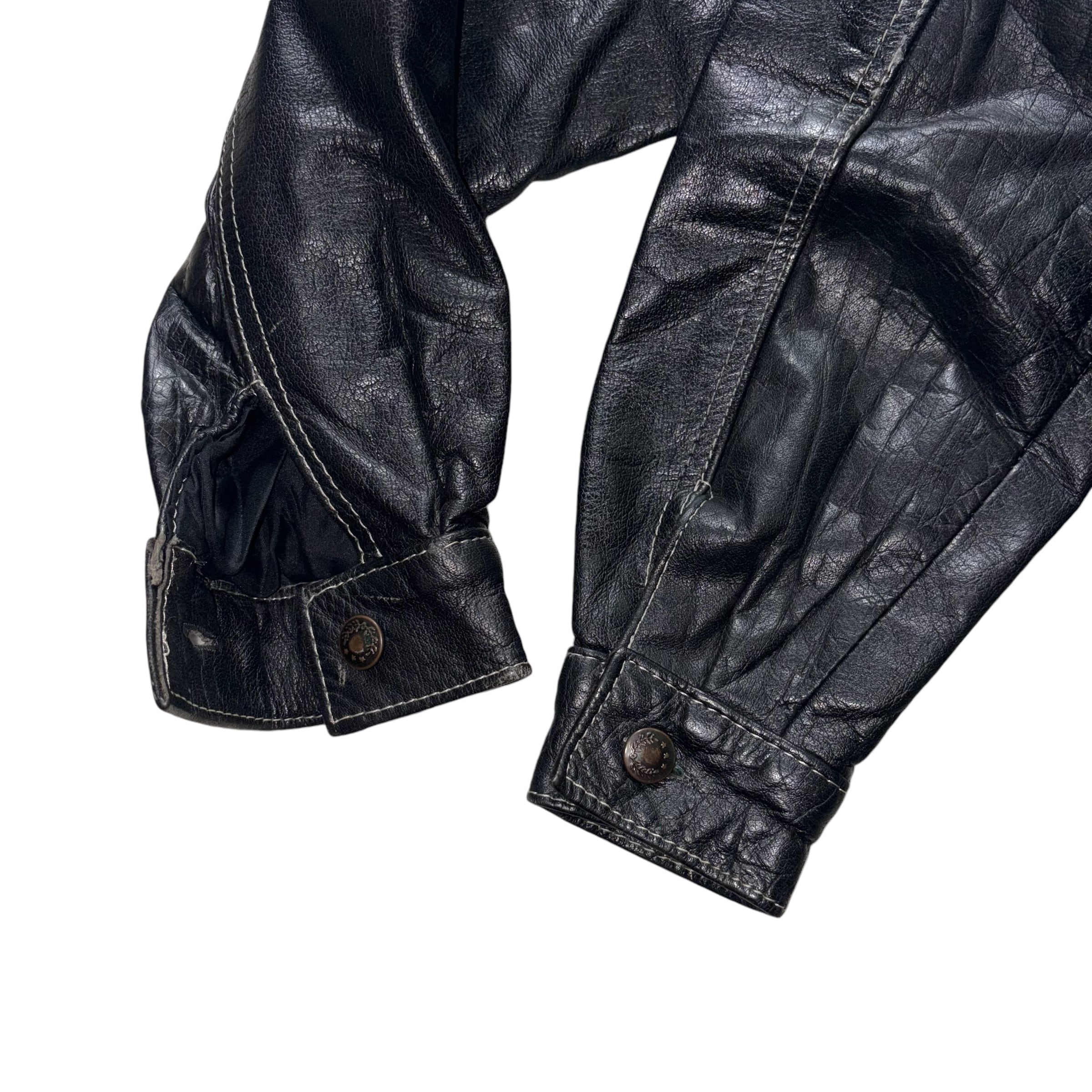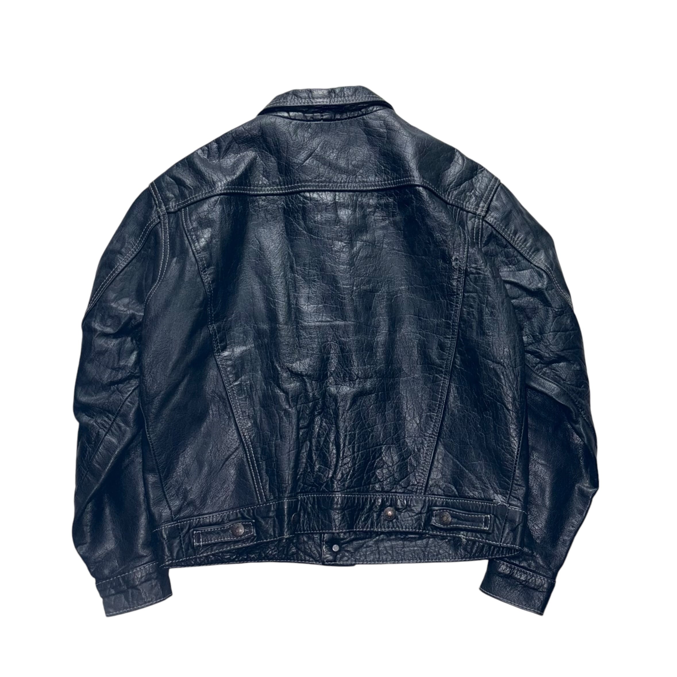 black leather trucker jacket